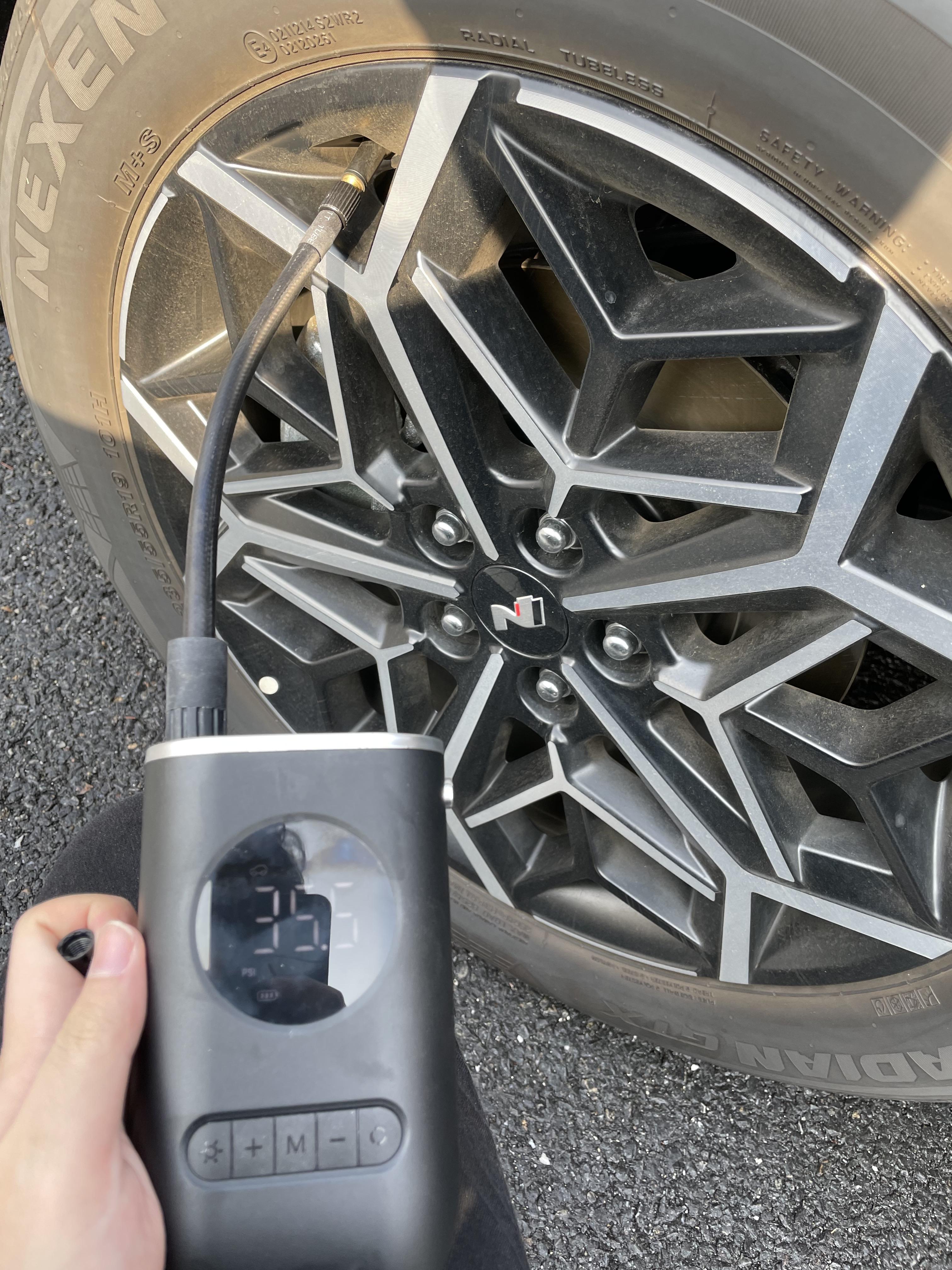 나는 보통 38~39 정도로 공기압을 맞추고 다니는데, 마침 확인을 해보니 4개 바퀴 모두 35 또는 36정도로 떨어져 있어서 충전을 해줬다.