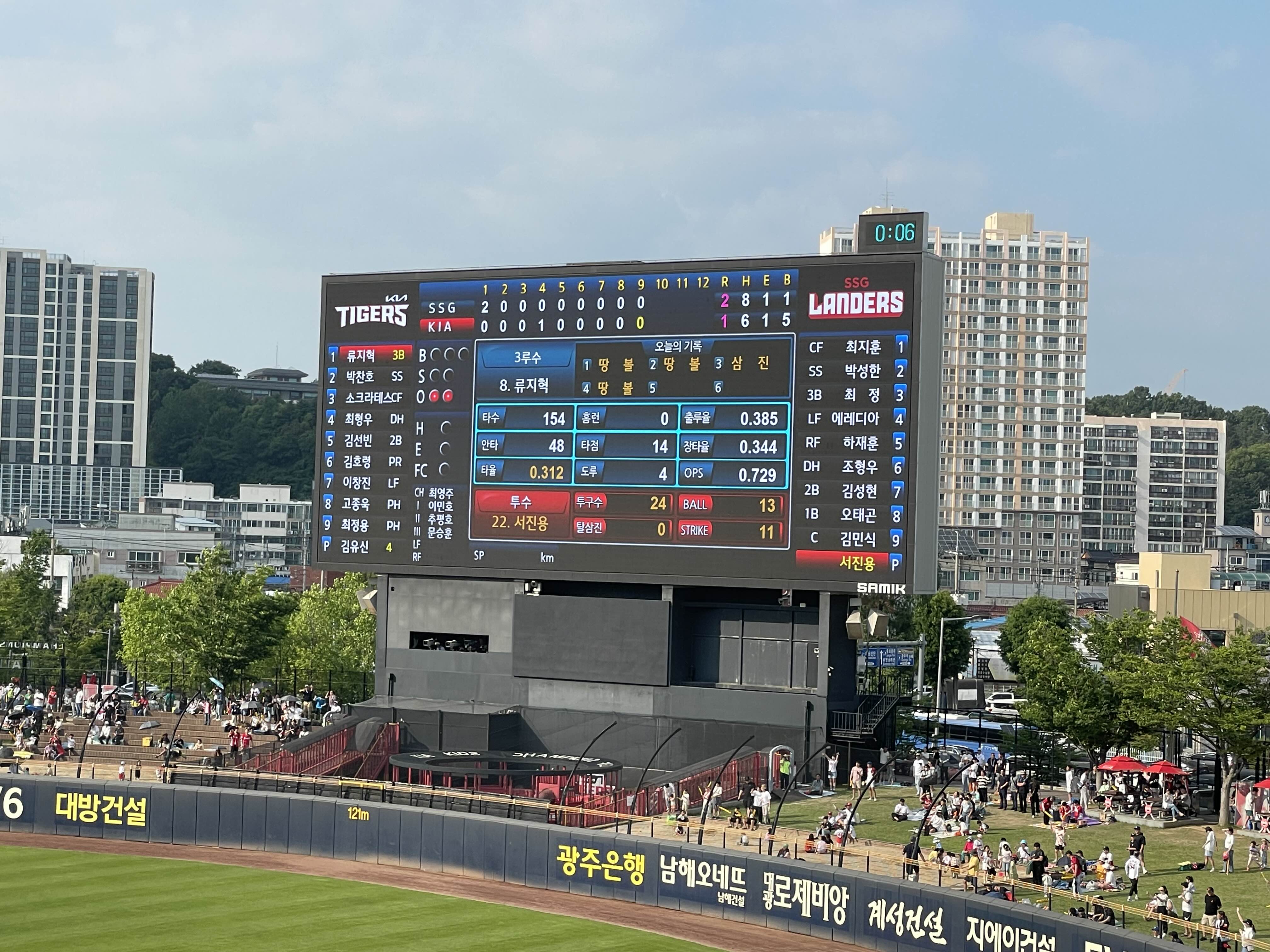 마지막으로 챔피언스필드에 대한 후기를 남기자면, 내가 중계로 본 경기장의 이미지는 그래도 신축이고 웅장한 느낌이었는데 실제로 가본 야구장은 생각보다 규모가 크지는 않았다. 실제로 찾아보니 약 20,000석 규모로 신축급 야구장들 중에서는 큰 편은 아닌 것 같았다. 비슷한 규모의 라이온즈파크가 느낌상 훨씬 큰 느낌이었다.