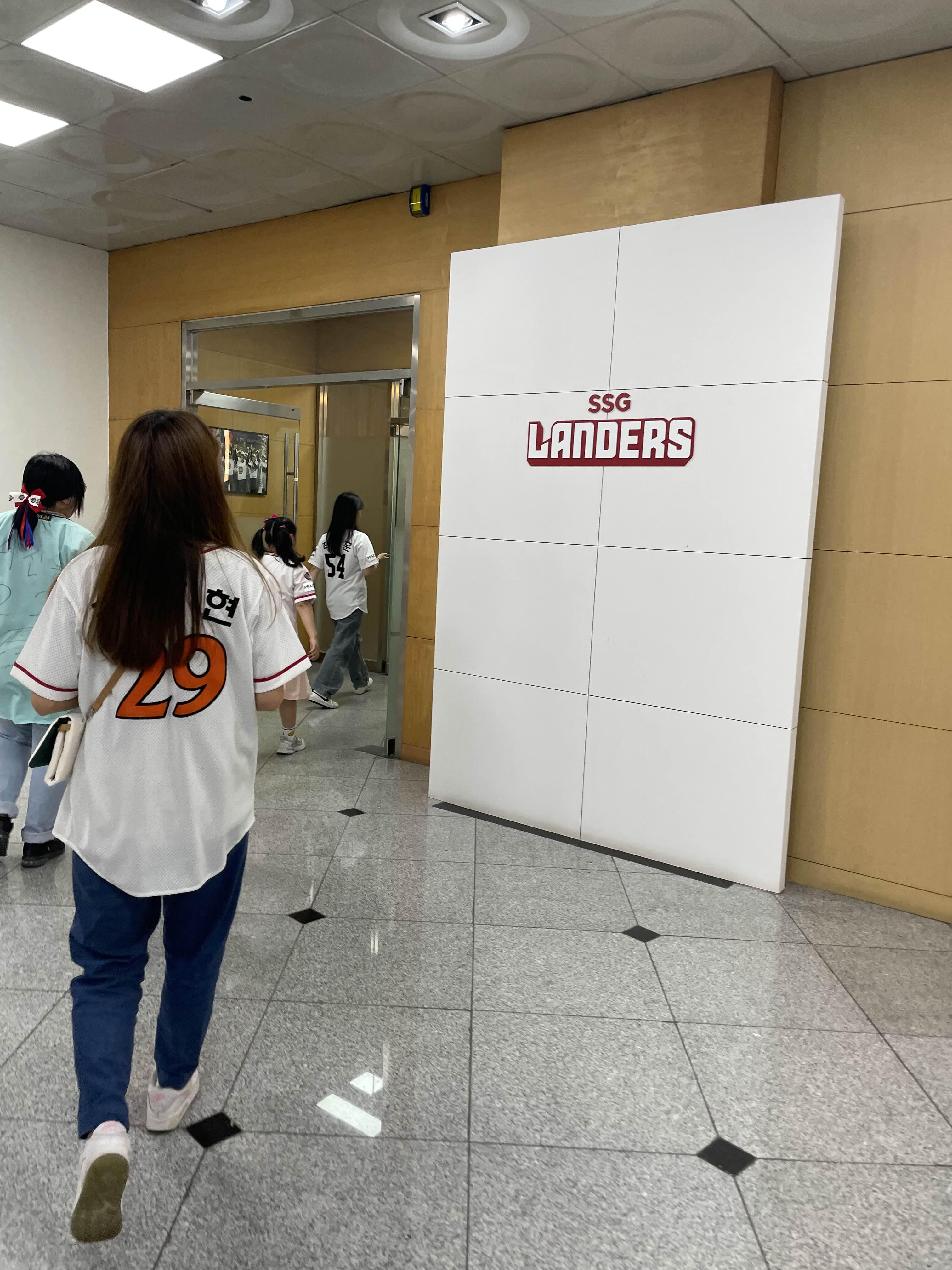 우리 일해들이 찍어준 사진, 이런식으로 선수들 입장할 때 하이파이브를 하는 자리디다.( 참고로 난 오른쪽에 모자쓰고 있는 빨간 최정 유니폼 ㅎㅎ) 개인적으로 경기 전에 저기에 서 있는 것만으로도 운동장 분위기에 압도되서 긴장이 되었다. 선수들이 참 대단하다고 생각한 부분…ㅎㅎ