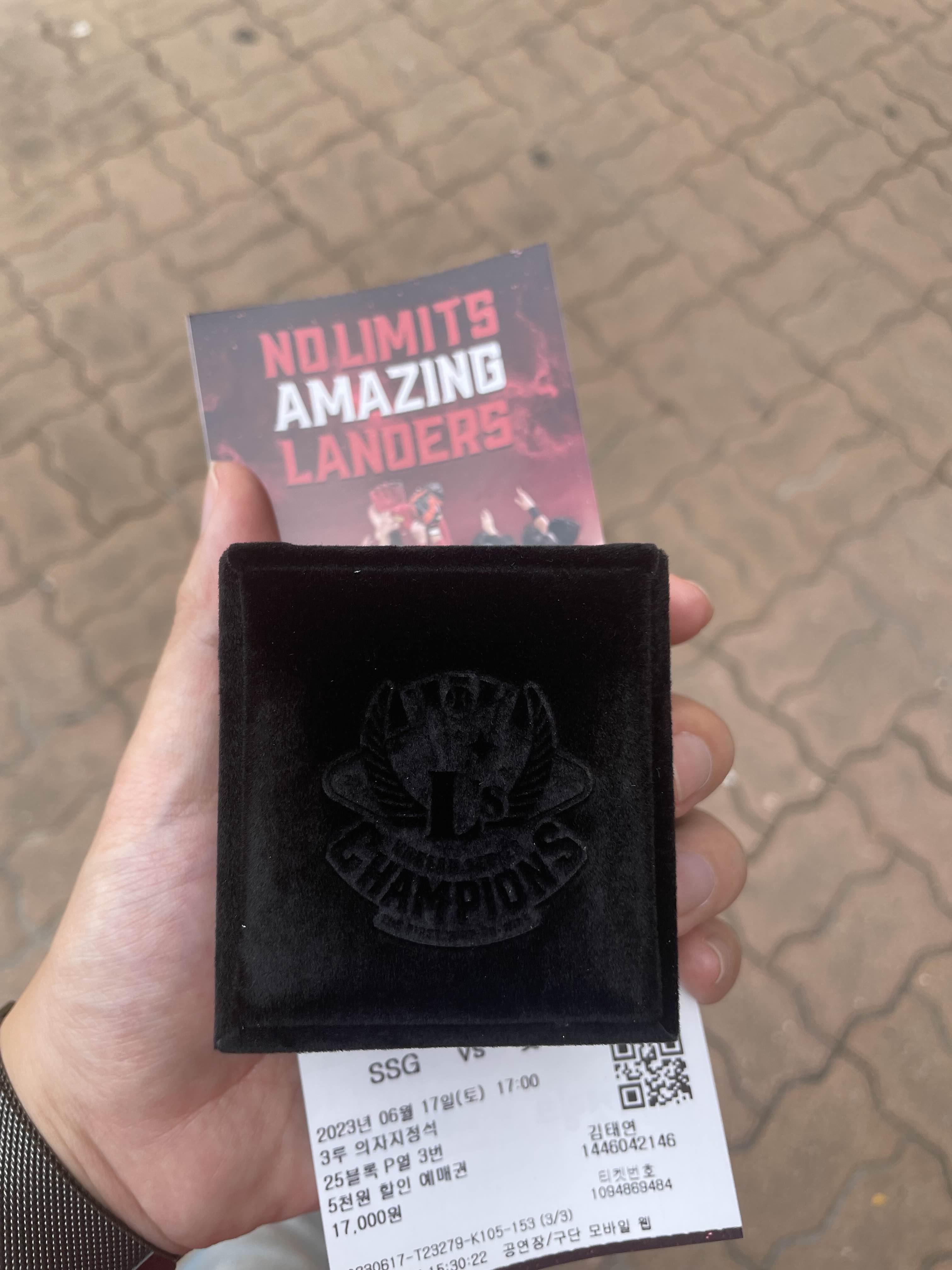 230617 랜더스 필드 SSG 롯데 직관일기 (3루 의자지정석, 어메이징 로드 당첨 후기, 그리고 레플레카 우승반지) 본문
