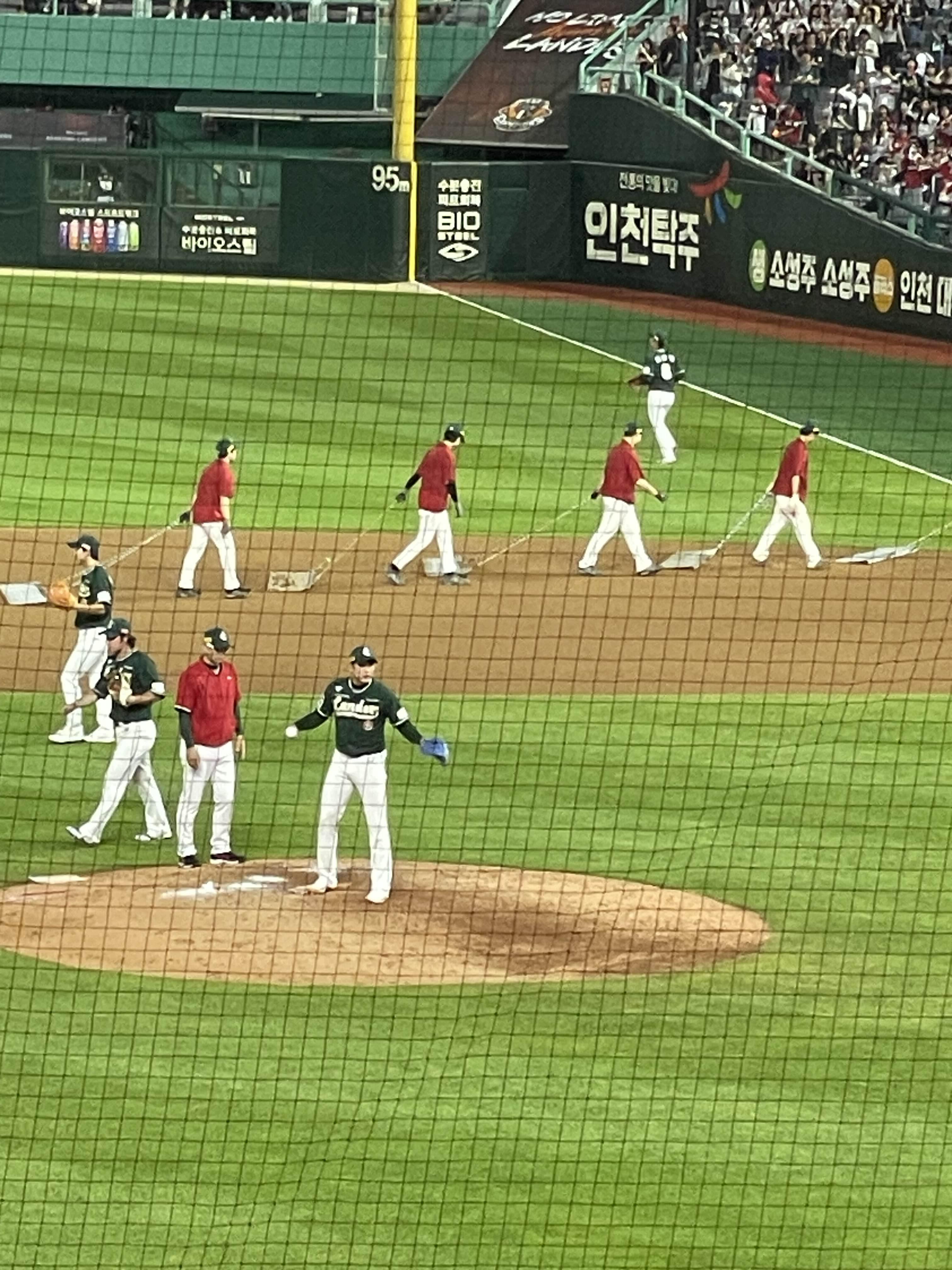 선수들 하이파이브 하는건 정말 순식간에 끝났고, 다시 돌아가는 길에 김원형 감독님과 눈이 마주쳐서 인사도 한 번 드리고 ㅎㅎ 다시 경기장으로 돌아왔다.