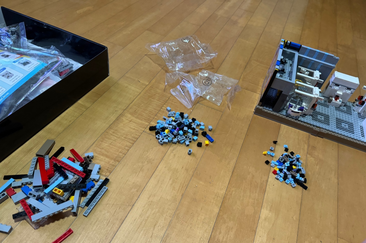 레고가 완성에 가까워질수록, 모든 부품들이 완벽하게 조립이 되어야 서로 결합이 잘 되었다. 이 외벽 작업을 할 때도 설명서대로 조립이 잘 안 되어서 힘으로 우겨넣다가 힘들게 만든 외벽 구조물들을 다 부셔버렸던 일도 한 번 있었다...