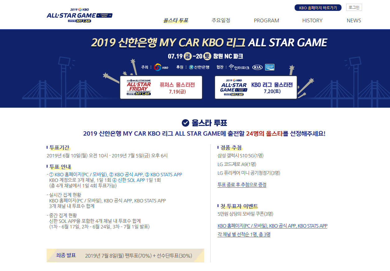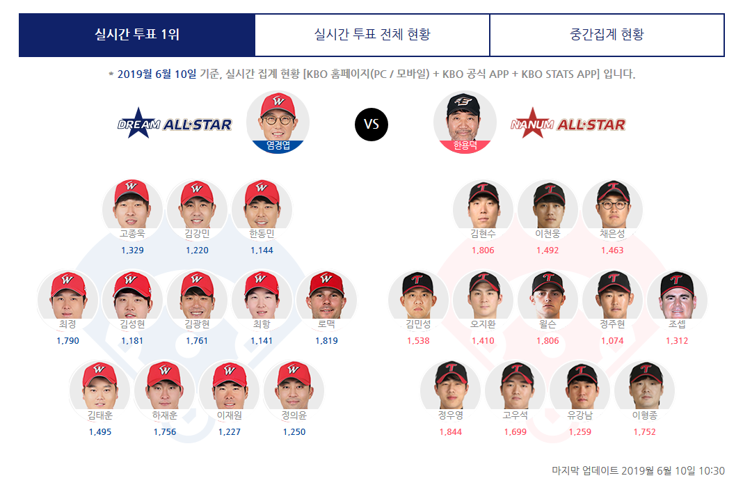 6월 10일부터 7월 5일까지, 오늘 KBO리그 2019 올스타전 팬투표가 시작이 되었다.