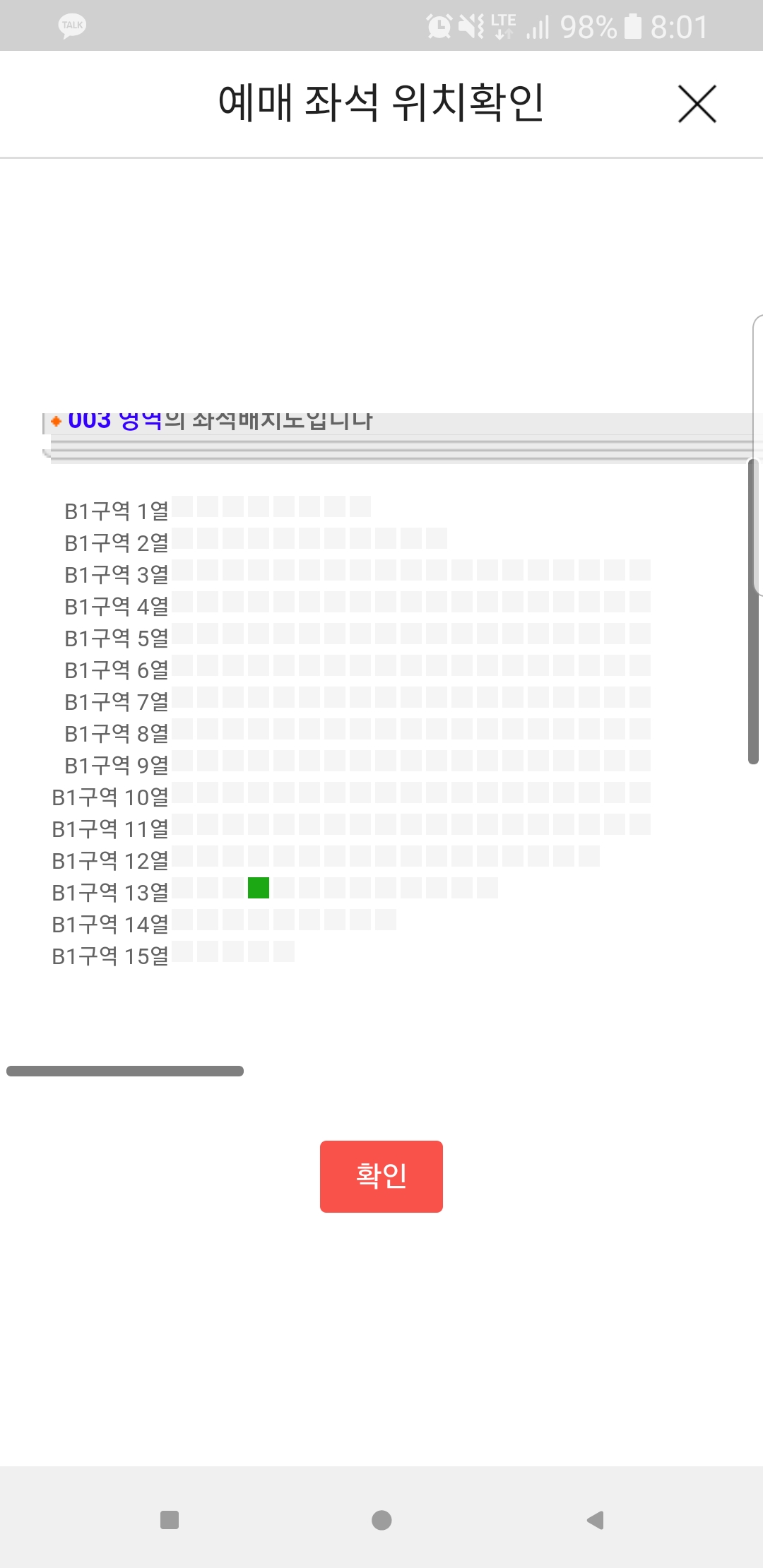 서버시간을 보고 들어왔다면, 대부분 내가 원하는 구역에 꽤 많은 자리가 남아있는 것 처럼 보인다.