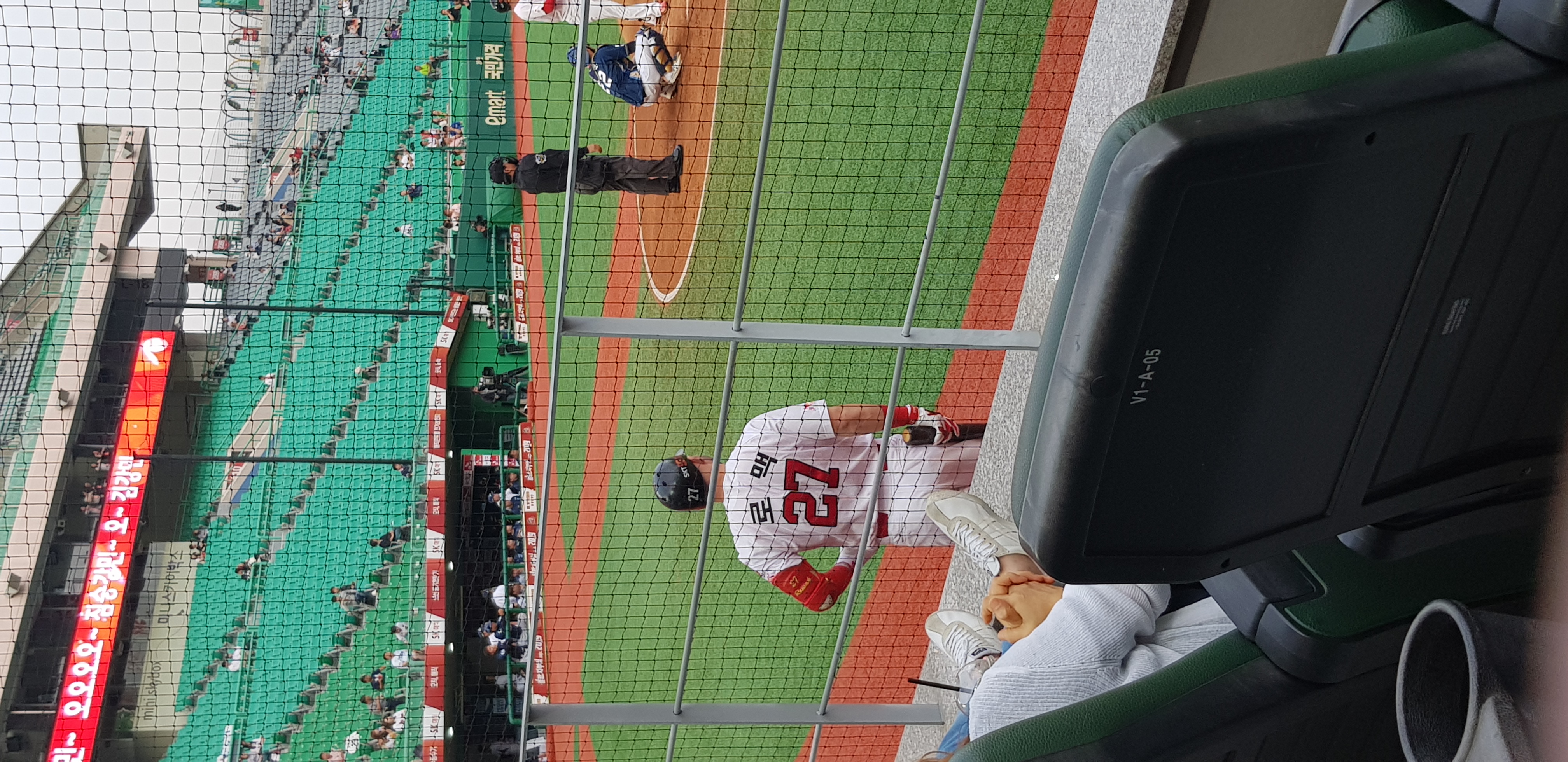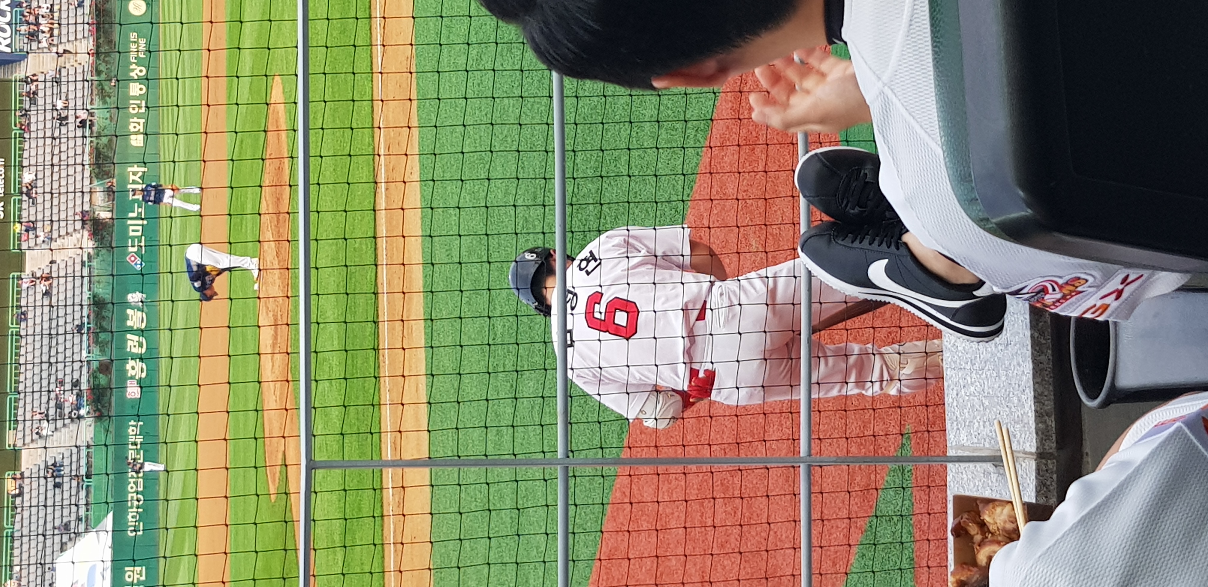 이런 자리에 왔으면 인증샷 한 번은 남겨야지ㅎㅎ 야구 정말 잘 보이고, 의자도 편하다. 12회말까지 경기가 이어진다고 해도 피로감 없이 편안하게 경기를 관람 할 수 있을 것 같다.