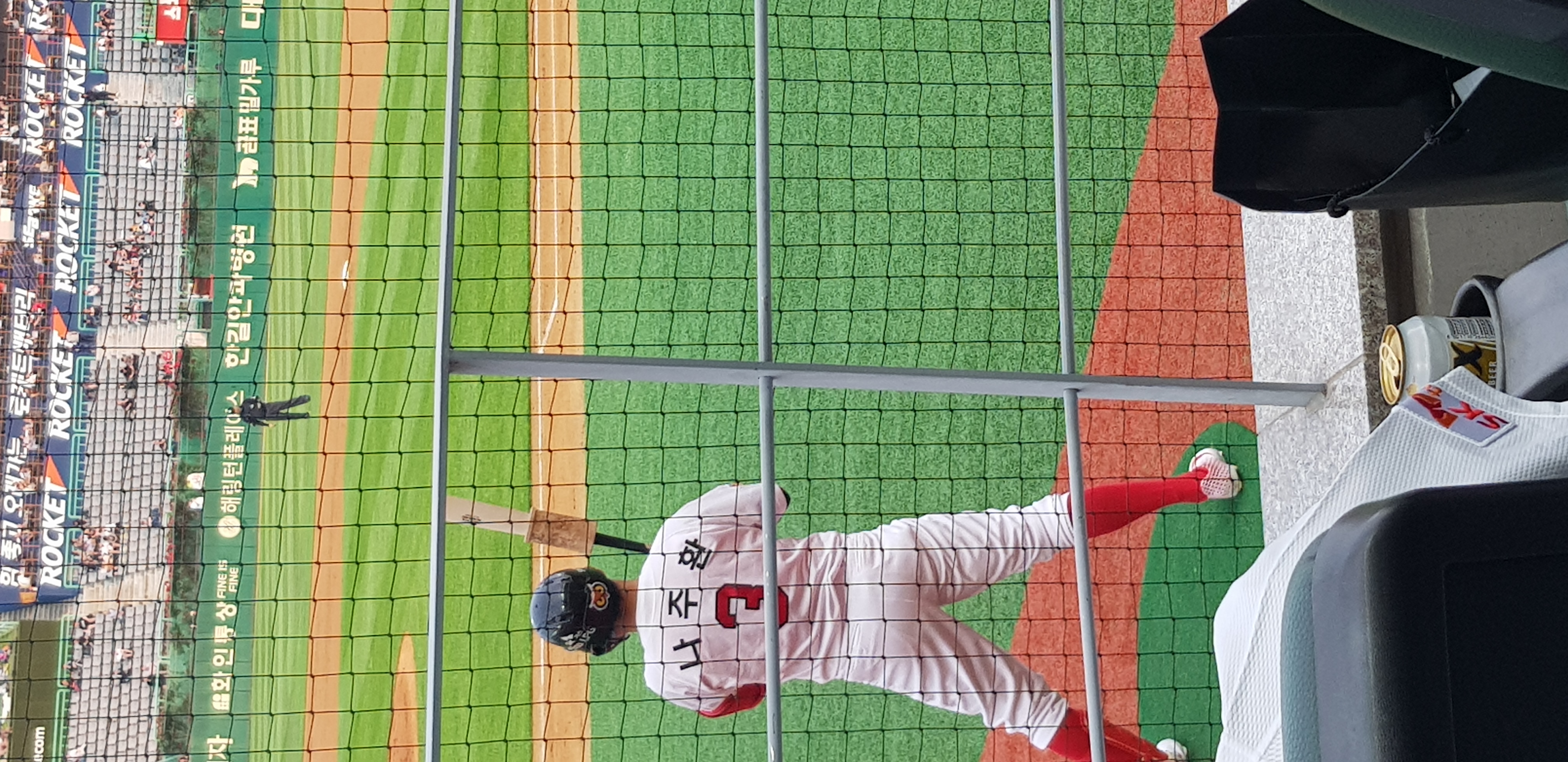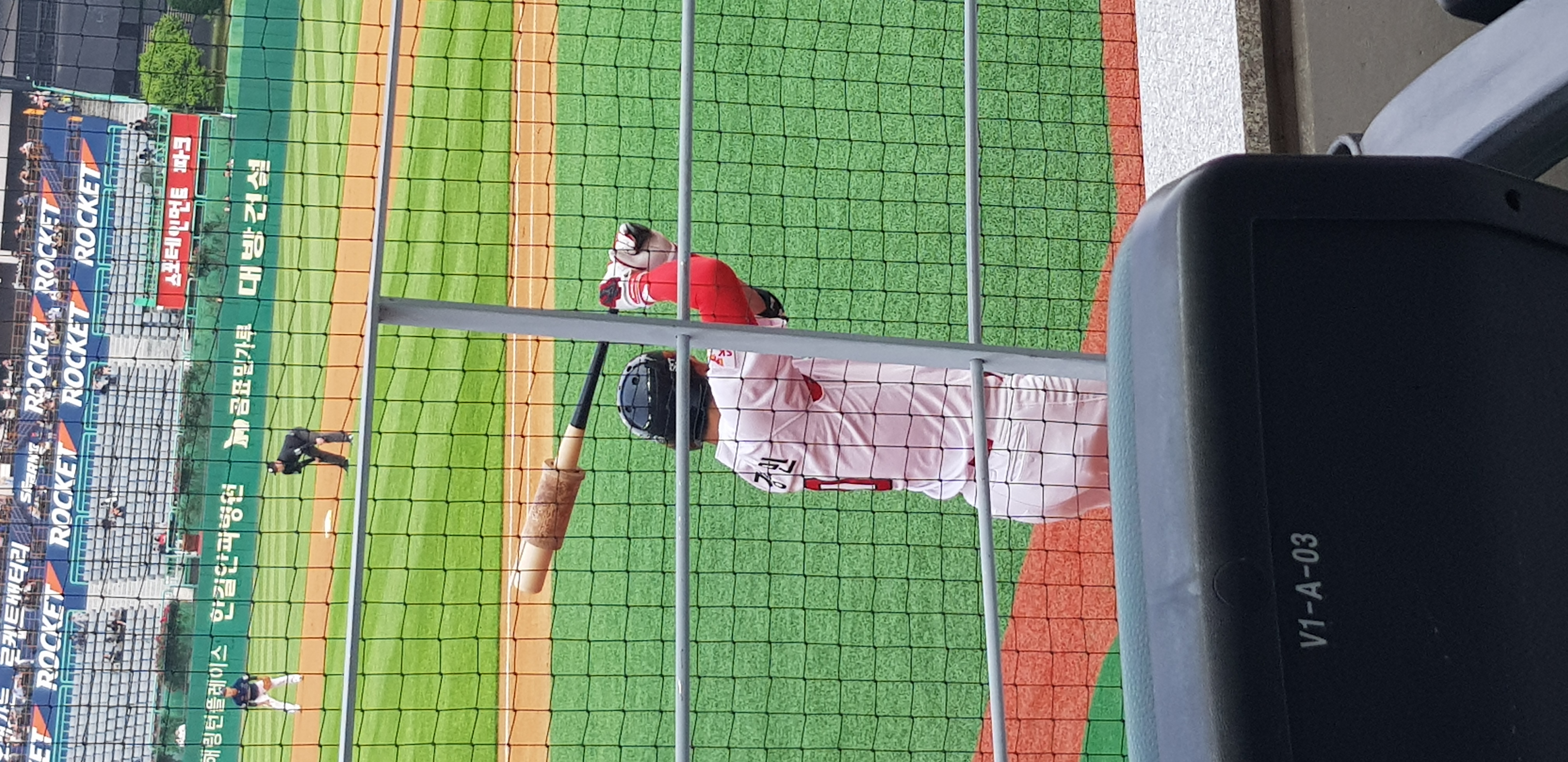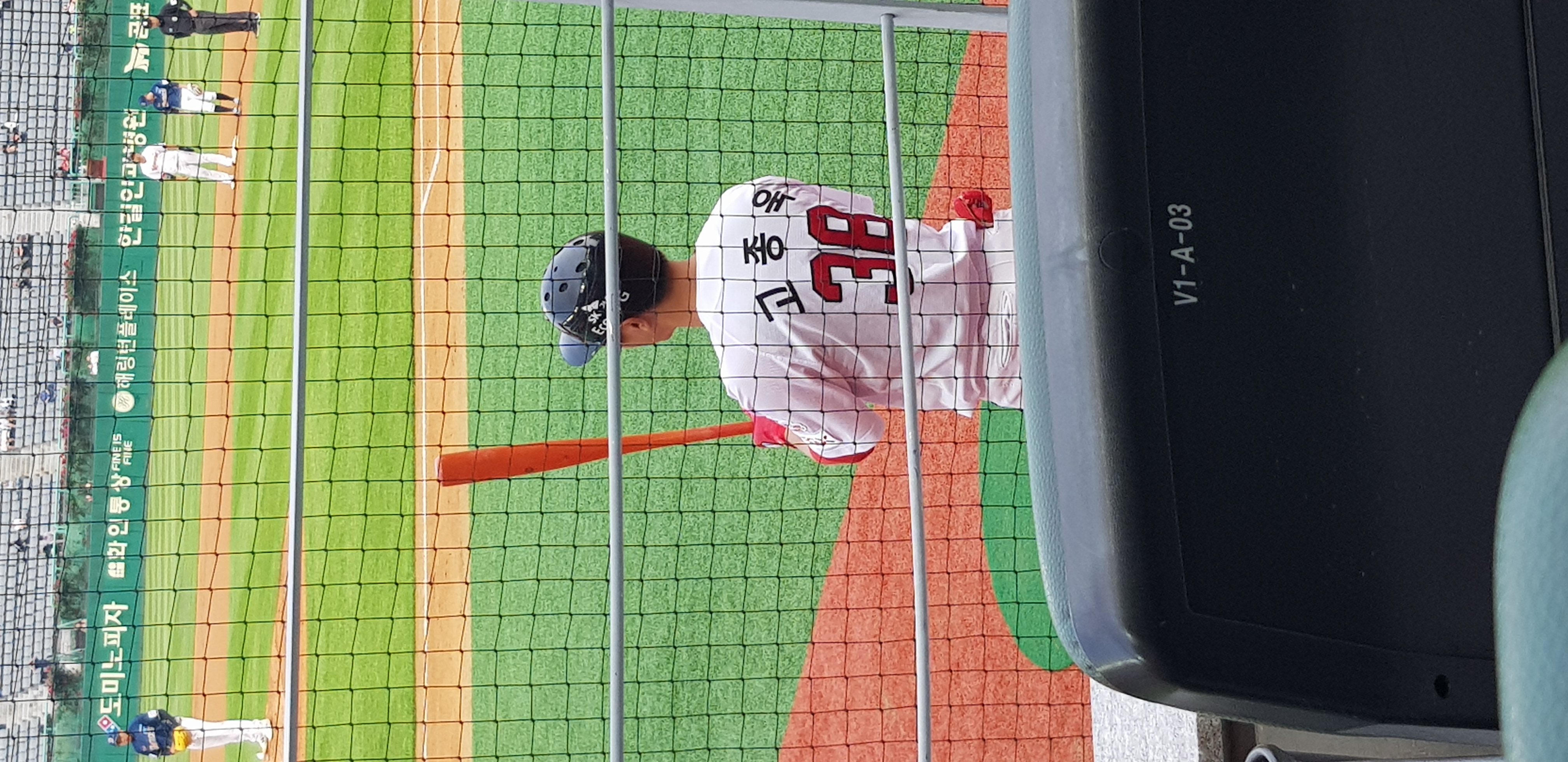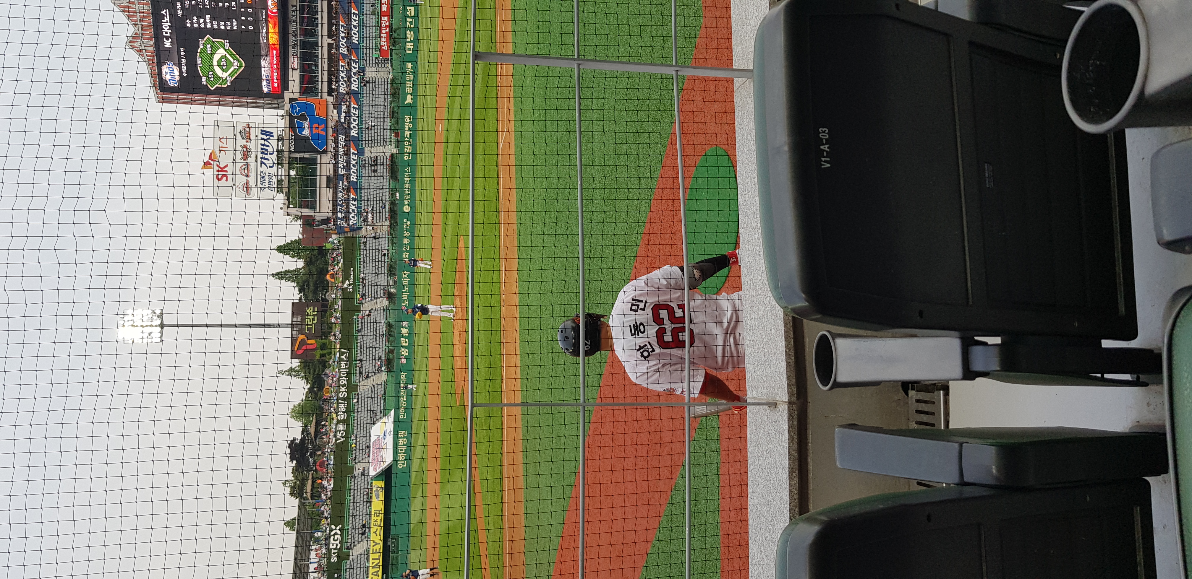 이 자리의 또 다른 장점은 선수들이 대기타석에서 타격 준비하는 것을 바로 앞에서 볼 수 있다는 것이다. 그래서 야구를 보면서 그 69억 선수만 뺴고 모두 사진을 찍어봤다.