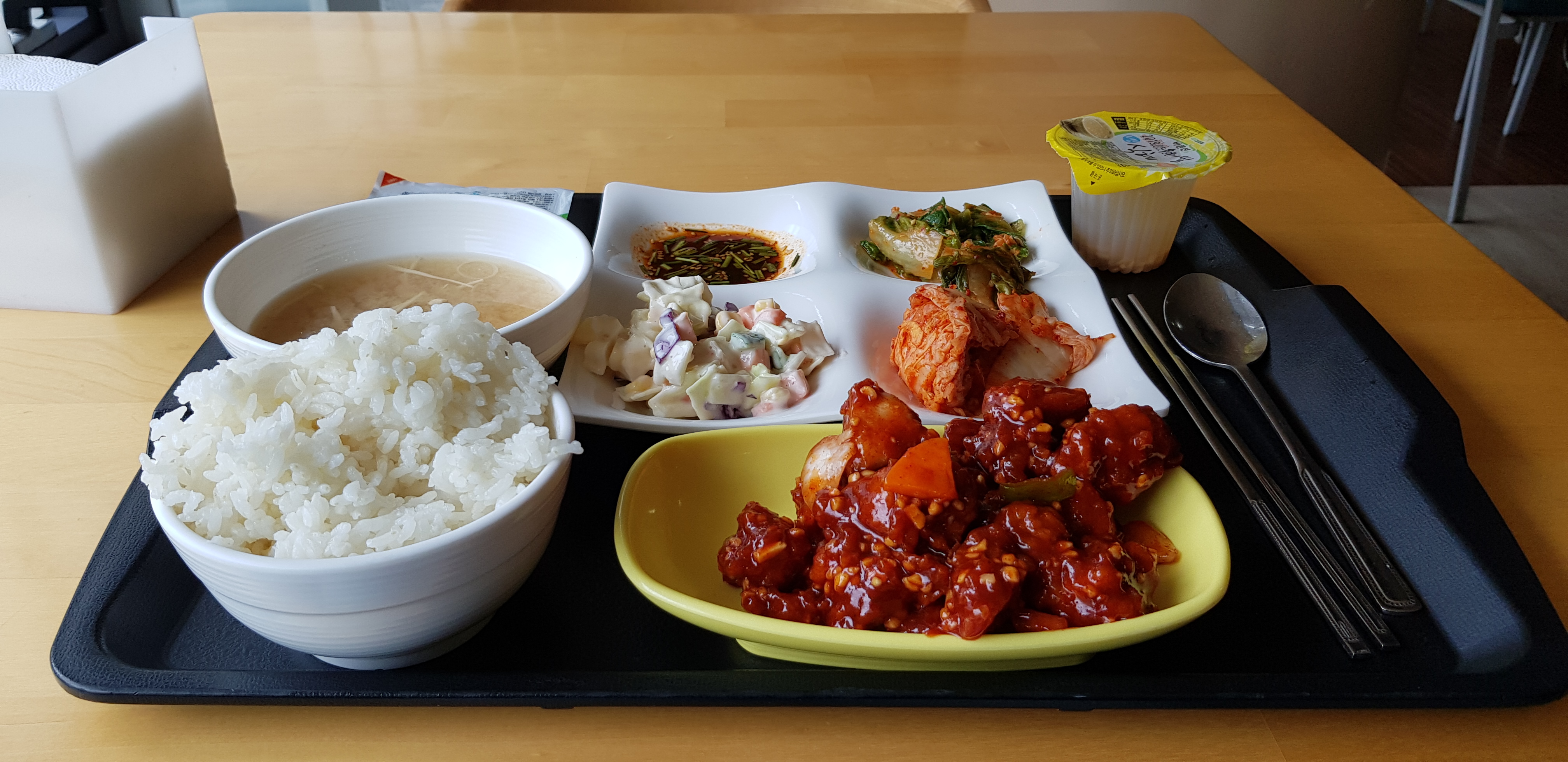 머신러닝 세션이 끝나고 밥을 먹었다. 사실 밥이 가장 중요하다. 첫째날 점심에는 받은 식권으로 숭실대 학식을 먹었다. 우리로 치면 교직원 식당 같은 곳 같았는데, 닭강정이 나왔는데 무려 갯수 제한 없이 원하는 만큼 가져가는 것 이었다. (사진 참조)