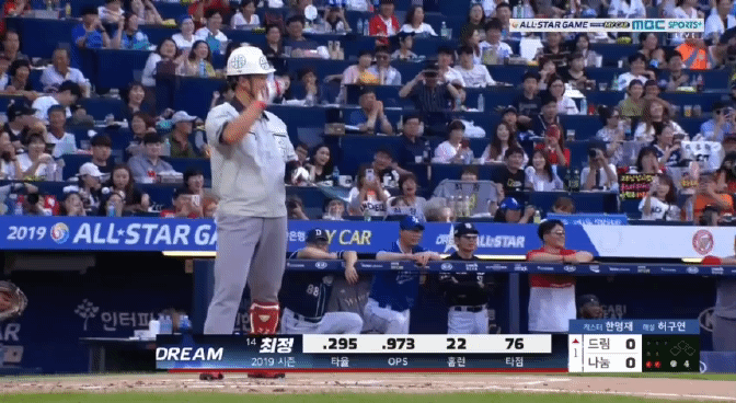 이어서 한동민이 타석에 들어선다. 올스타전은 거의 SK가 다 먹여살리고 있는 느낌이다. 이번에는 어떤 모습으로 변신한 것일까