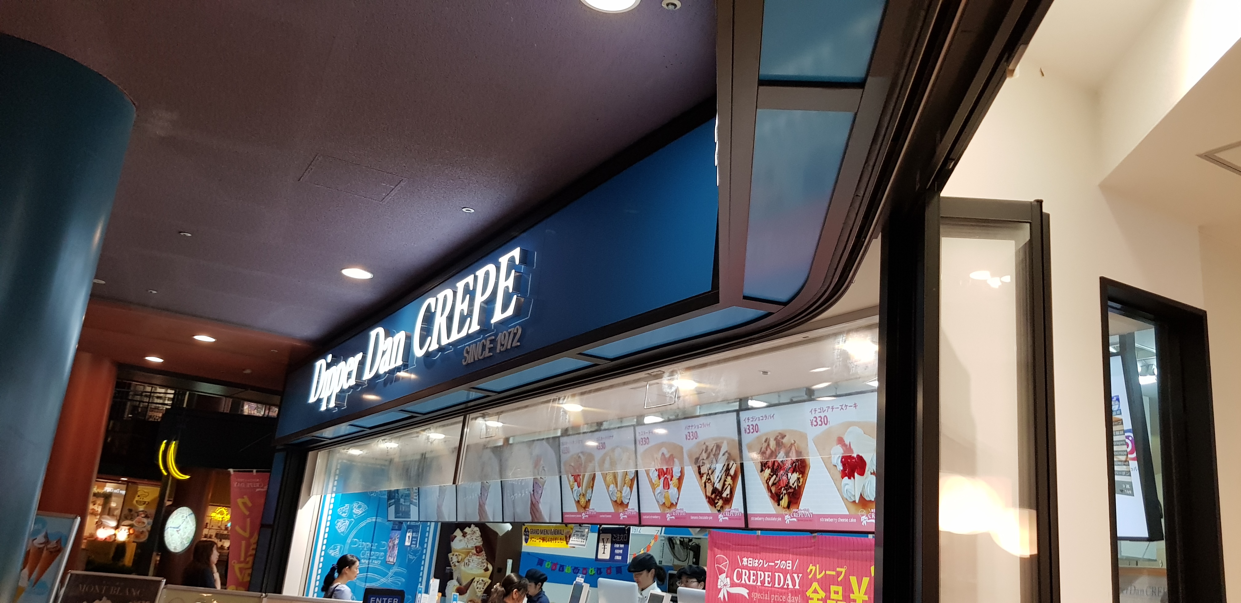 마침 속이 느끼해서 조금 달달한 것을 먹고 싶었는데, 크레페집이 보였다. 사실 처음 이 앞을 지나갈 때는 줄이 너무 길어서 그냥 지나쳤었는데, 저녁을 먹고 가보니 줄을 서있지는 않았었다. 메뉴판에는 490엔이라고 되어있는 메뉴가 330엔에 계산이 된다. 왜 그런건지는 내가 일본어를 하나도 몰라서 모르겠지만, 어쨌든 생각한것 보다 싸게 먹으니 좋았다.