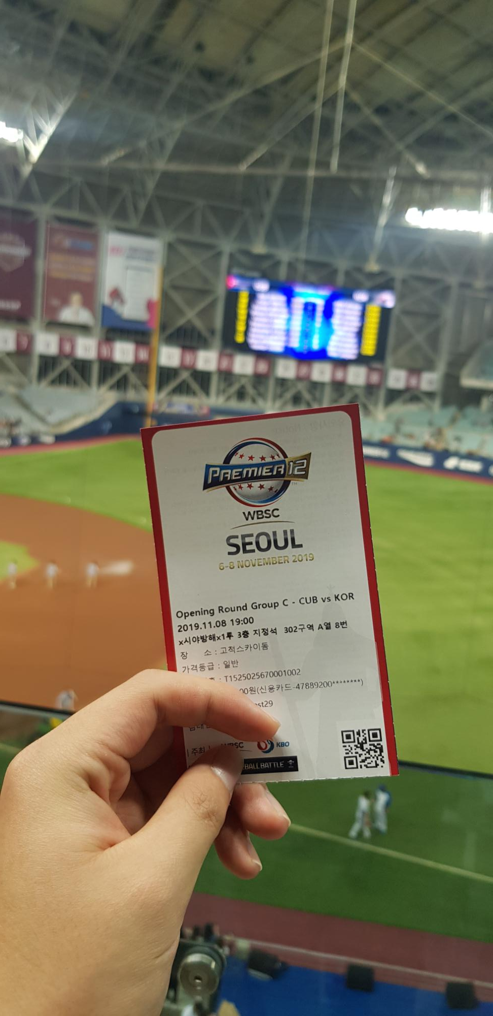 가을야구 직관만을 기다리다가 너무 허무하게 시즌이 끝나버려서 친구와 함께 고척돔에서 열리는 프리미어12 경기를 보러가기로 했다. 한국이 속한 조의 예선경기가 고척돔에서 열렸으며, 수,목,금 에 경기 일정이 있어서 금요일 경기를 직관하러 갔다.