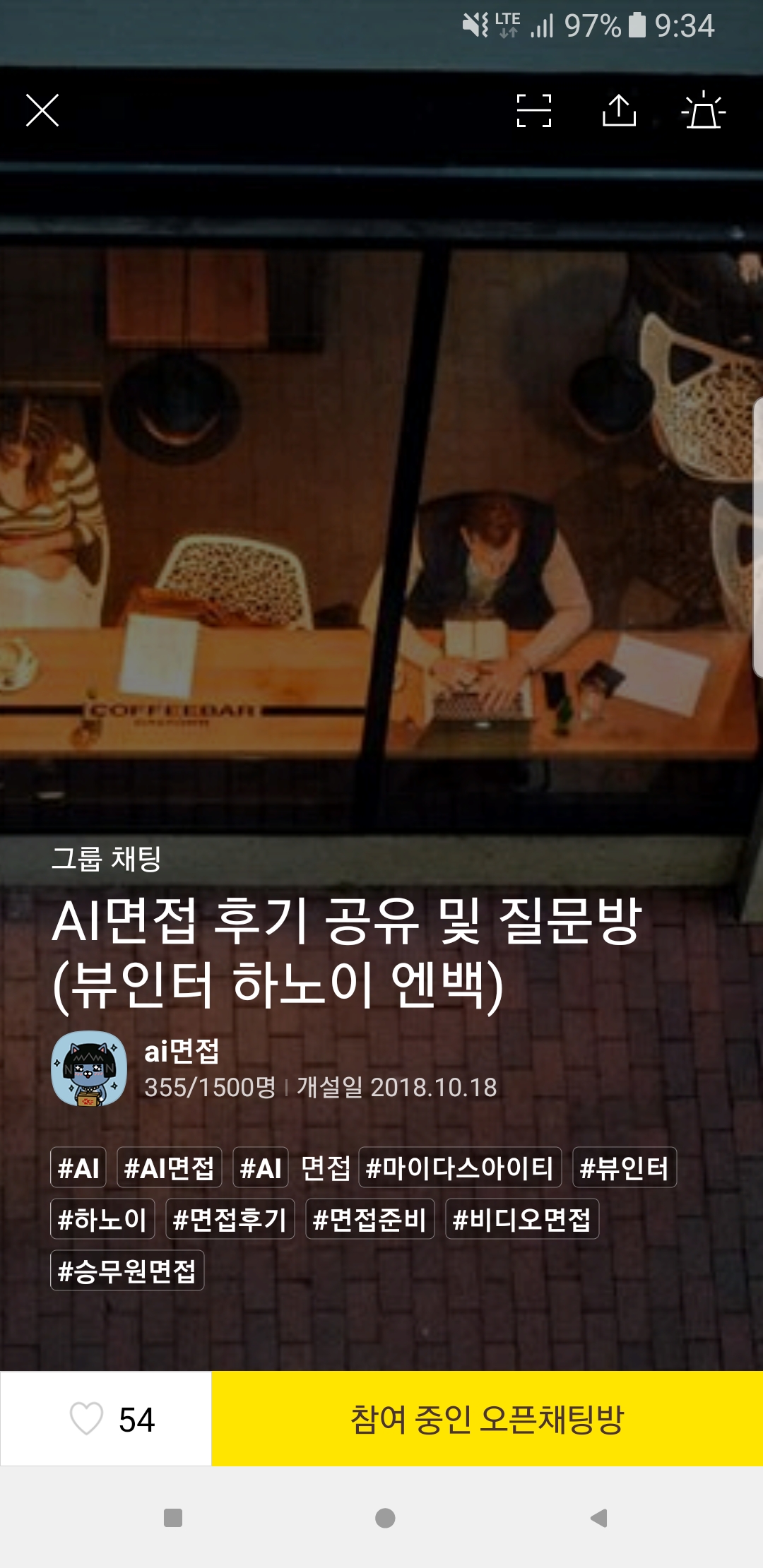 찾아보니 카카오톡 오픈채팅방으로, 뷰인터 AI면접에 대한 후기방이 있었다. 이 방을 들어가니 게시글로 후기가 몇개 올라와 있었고, 간간히 톡방에 있는 사람들간에 질문이 오가고 있었다. 그렇게 많은 정보를 얻지는 못했지만, 워낙 AI면접에 대한 정보가 없기 때문에 AI면접을 준비한다면 이 톡방에 들어가있는 것도 괜찮을 것 같다.