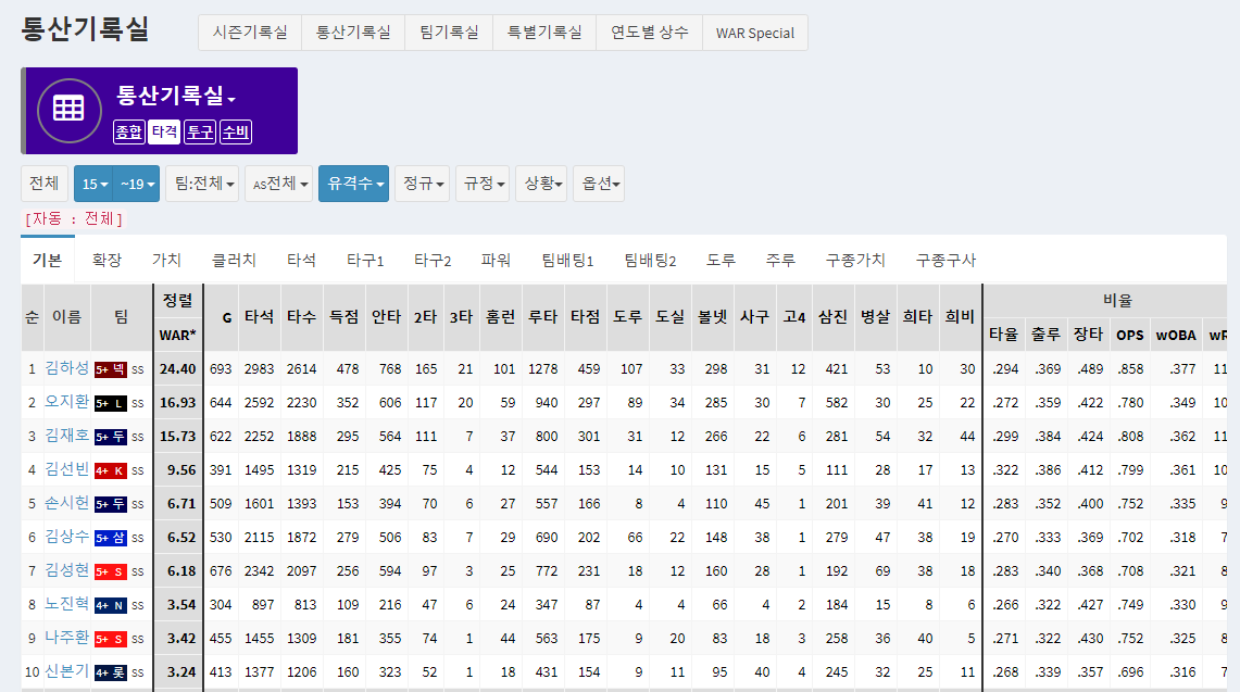 마지막으로, 요즘 가장 간단하게 선수의 가치를 평가하는 지표 중 하나인 대체선수대비 승리기여도, WAR을 봐도 유격수들 중에 김하성 다음을 랭크하고 있는 것을 볼 수 있다. 이 누적스탯들을 보니, 몇년째 김성현선수가 대체불가인 유격주전이라는게 정말 믿기지 않는다...