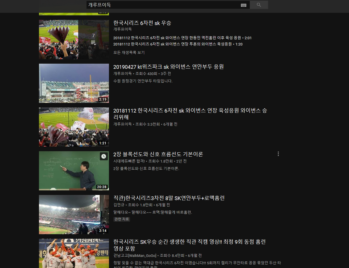 이전까지는 유튜브에 개루프이득을 검색하면 전달함수와 같은 회로 전공 강의들이 나왔었는데, 내가 개루프이득이라는 이름으로 채널을 만들고, 영상을 올리면서부터 개루프이득으로 검색하면 SK와이번스 영상들만 잔뜩 나온다.... 이 부분은 상당히 미안하게 생각하고 있다. (그래도 카트 영상도 올리기 시작했는데 아직 그건 안 나오는게 다행인가...)