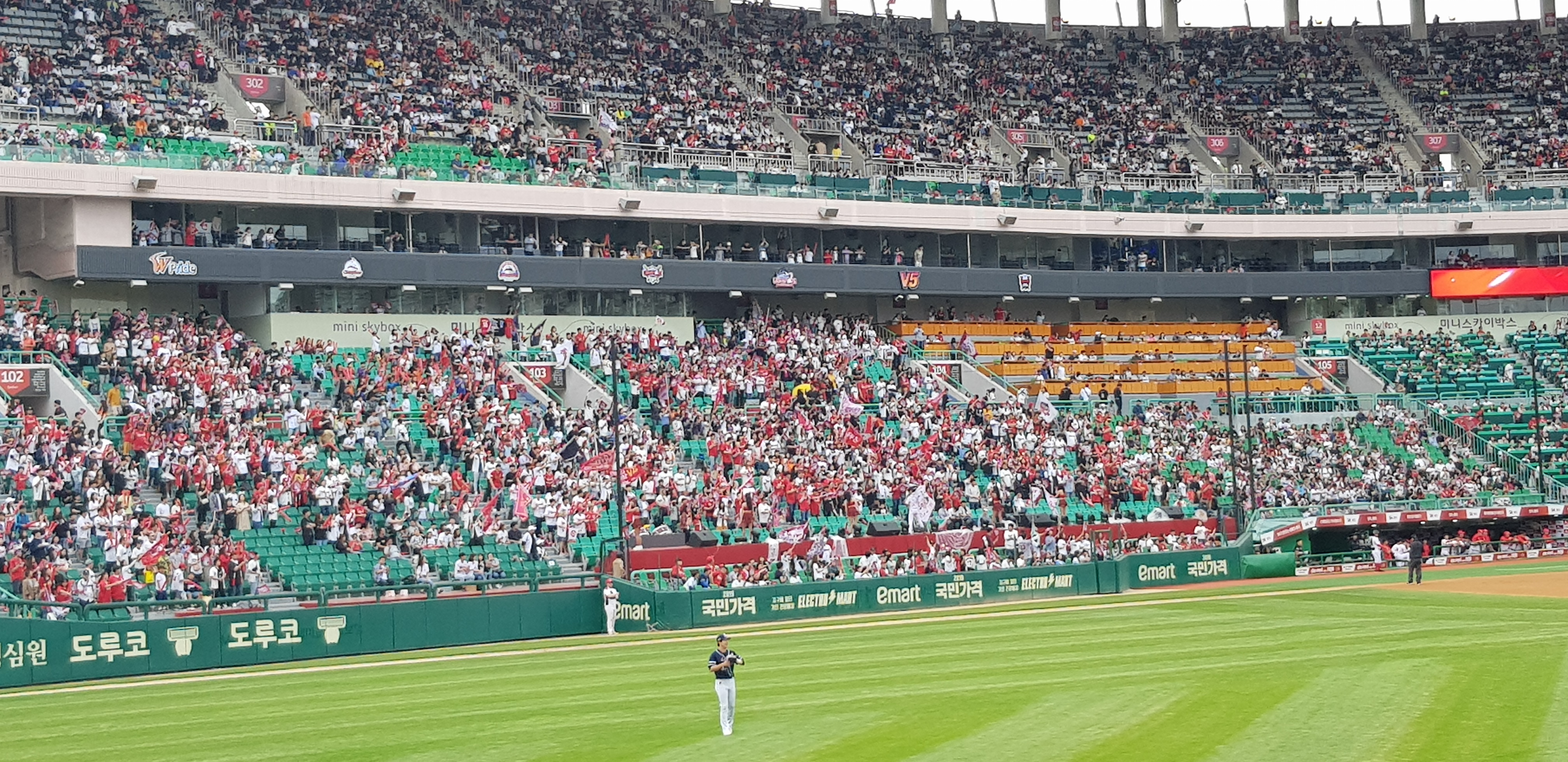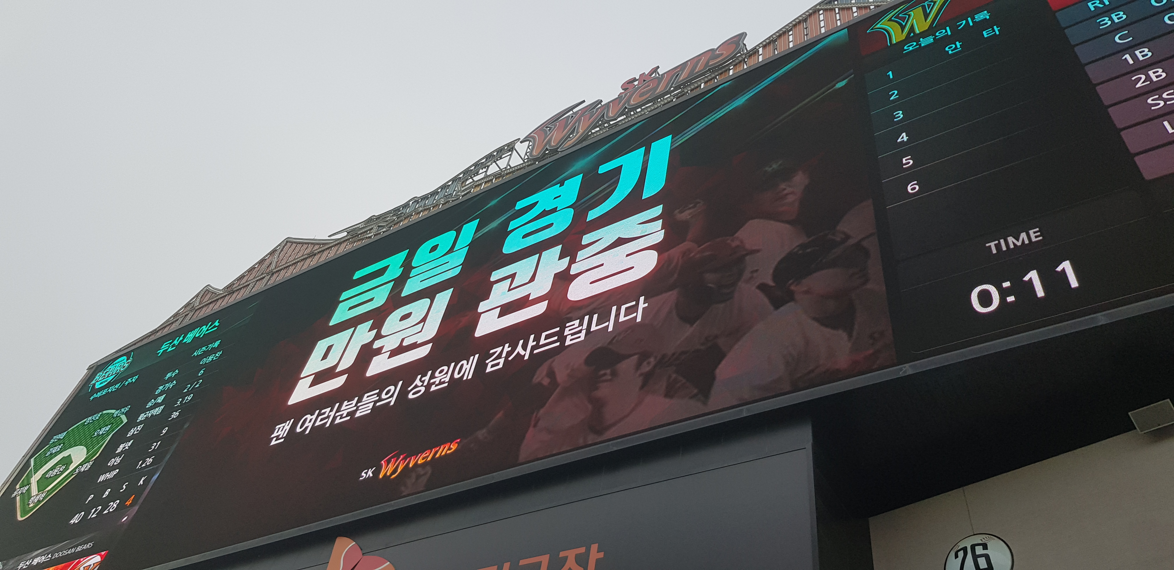 역시나 만원 관중이다. 시즌 첫 매진이었다. 만원 관중 앞이어서 그런지, 박종훈 퇴장 후 무너질 줄 알았던 불펜 투수들은 꾸역꾸역 두산 타선을 무실점으로 잘 막아주고 있었다.