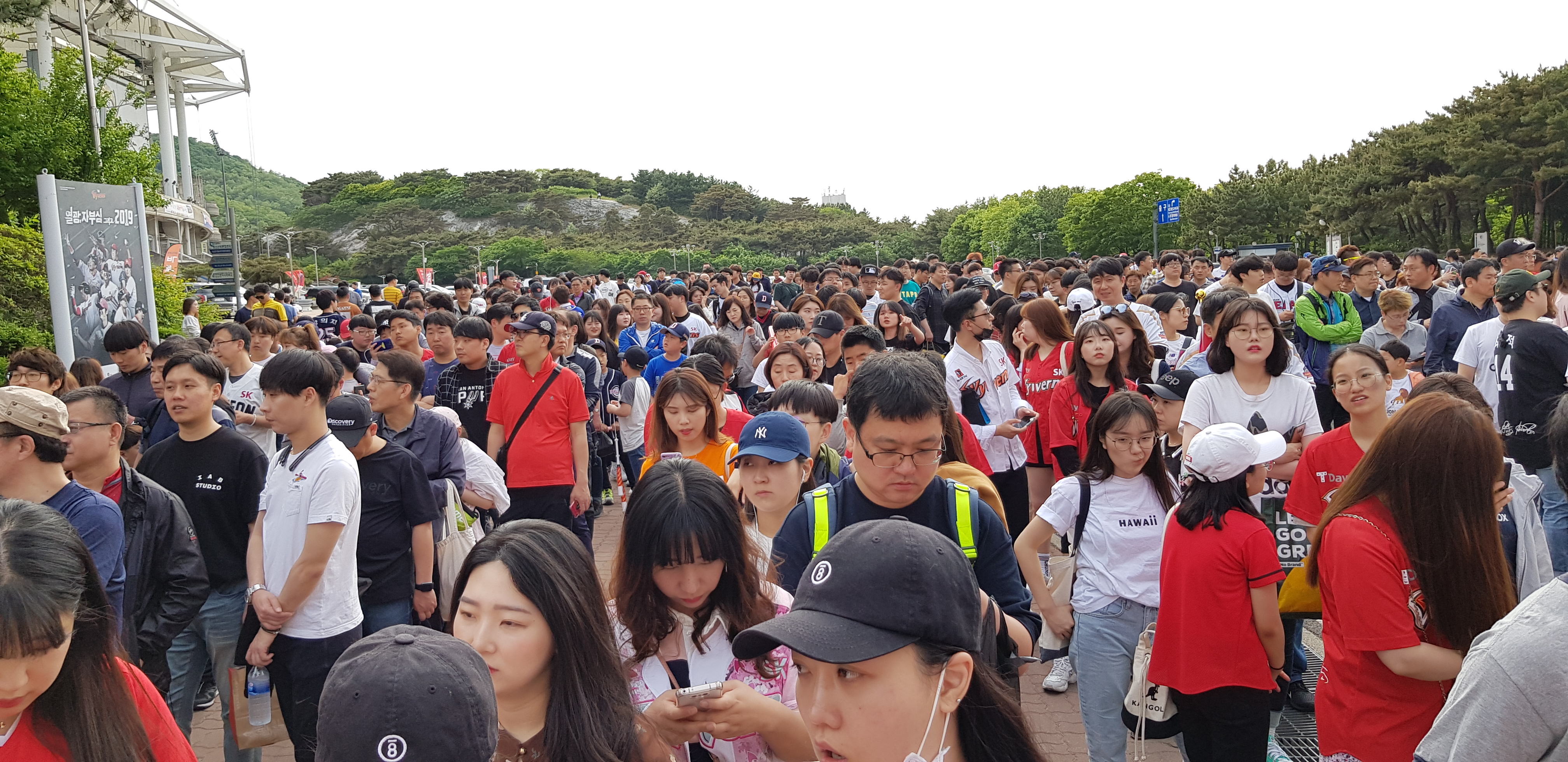 내 뒤에 줄 상황이다. 다시 말하지만, 지금은 경기 시작 약 5분 전 상황이다. 나와 같은 줄과 내 옆 줄에 서있는 사람들 중 대부분은 미리 예매를 해왔지만, 그깟 깃발을 받겠다고 신청해서 줄을 서 있는 것이다. (후문을 듣자 하니 이 때쯤 도착한 사람은 4회 말이 끝날 떄 입장했다고 한다....)
