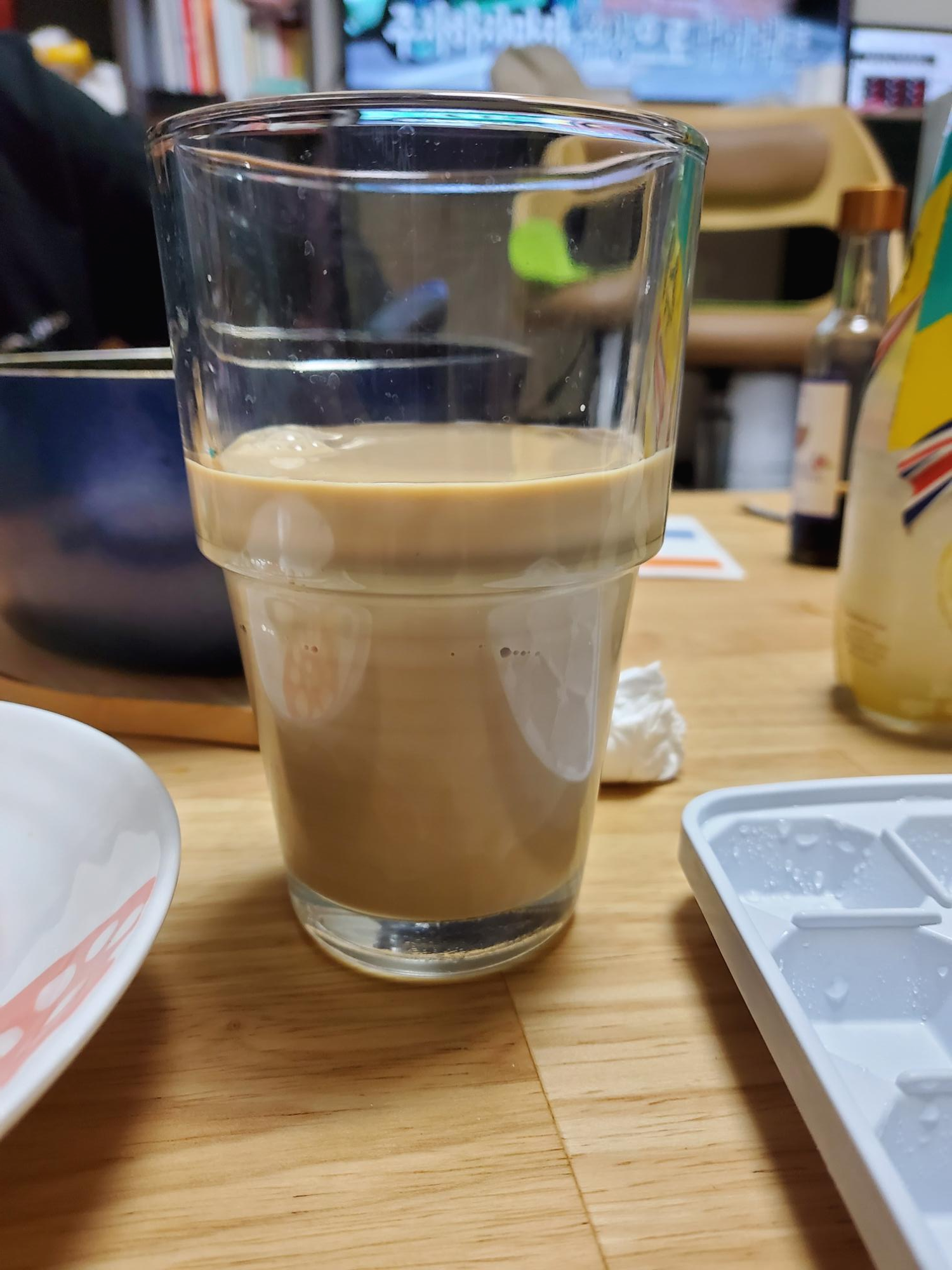 비율은 얼음에 카피냑 더치커피 우유를 1대 1 대 3으로 섞어주었다.