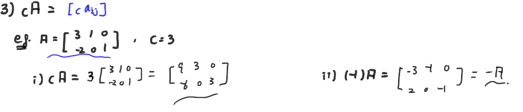 여기까지는 역시 생각하는대로이다. 모든 성분에 대해 상수배를 해준 결과로 정의를 해준다. 예제를 보면, 두번째 문제의 경우는 위에서 정의한 행렬의 차를 다시 상수배를 통해 확인할 수 있다는 것 역시 볼 수 있다.