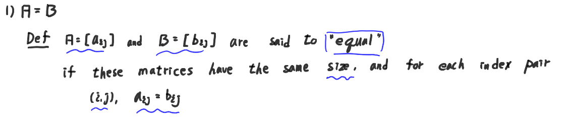 먼저, 행렬 A와 B가 같다는 것이 어떤 것인지 정의를 해보자.