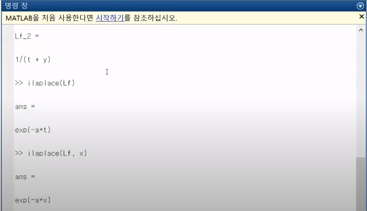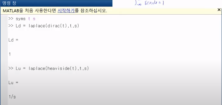이번에는 라플라스 변환을 매트랩을 통해서 실습을 해보는 내용이다.