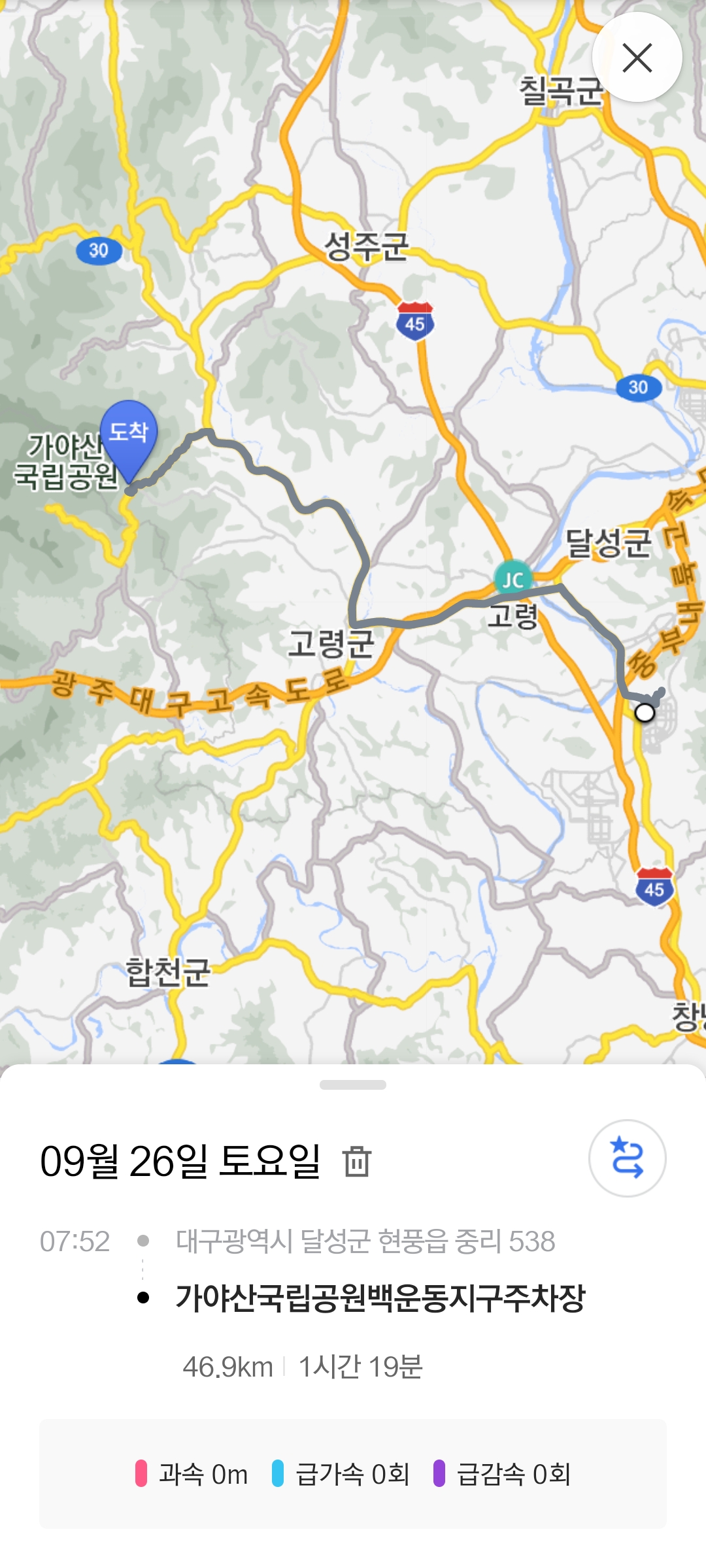 그나마 차를 몰기 시작한지 1달정도 되면서 집 주변에서의 기동력은 조금 생겼고, 이제 차도 조금 익숙해지면서 친구들과 함께 약 50km 정도의 거리인 가야산을 갔다왔다.