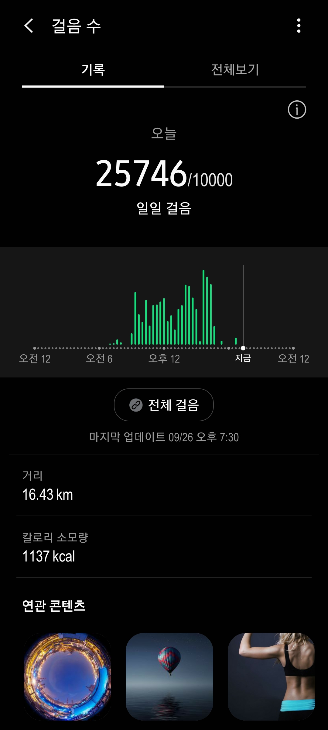 갤럭시 워치로 자동측정된 거리는 약 16km 정도 걸은 것으로 나왔다.