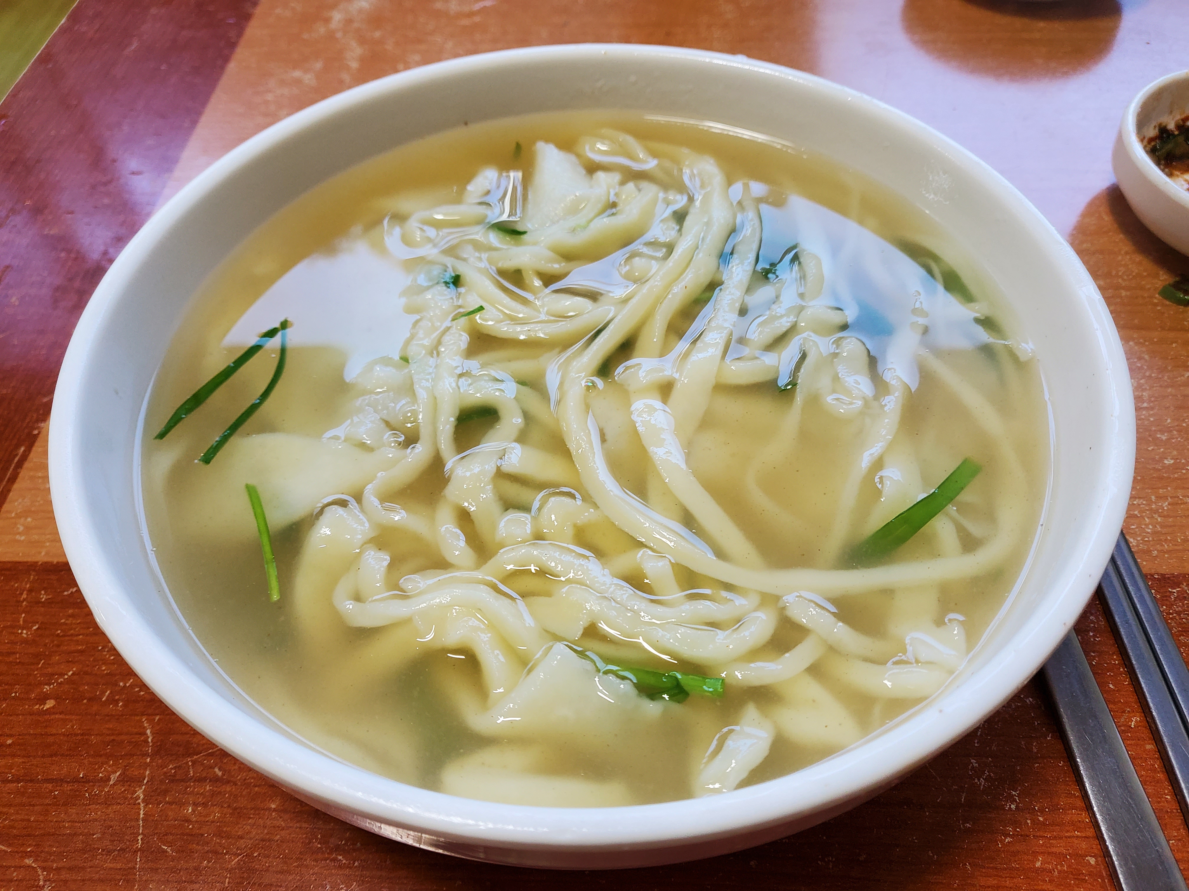 메인 메뉴 칼제비, 수제비도 아주 얇게 떠서 맛있었고, 딱 보자마자 찐 고인물의 자신감이 느껴졌다. 다른 칼국수들과 다르게 파, 감자 외에는 고명도 없고, 맛 역시 과하지 않고 부족함 없는 깔끔한 맛 이었다.