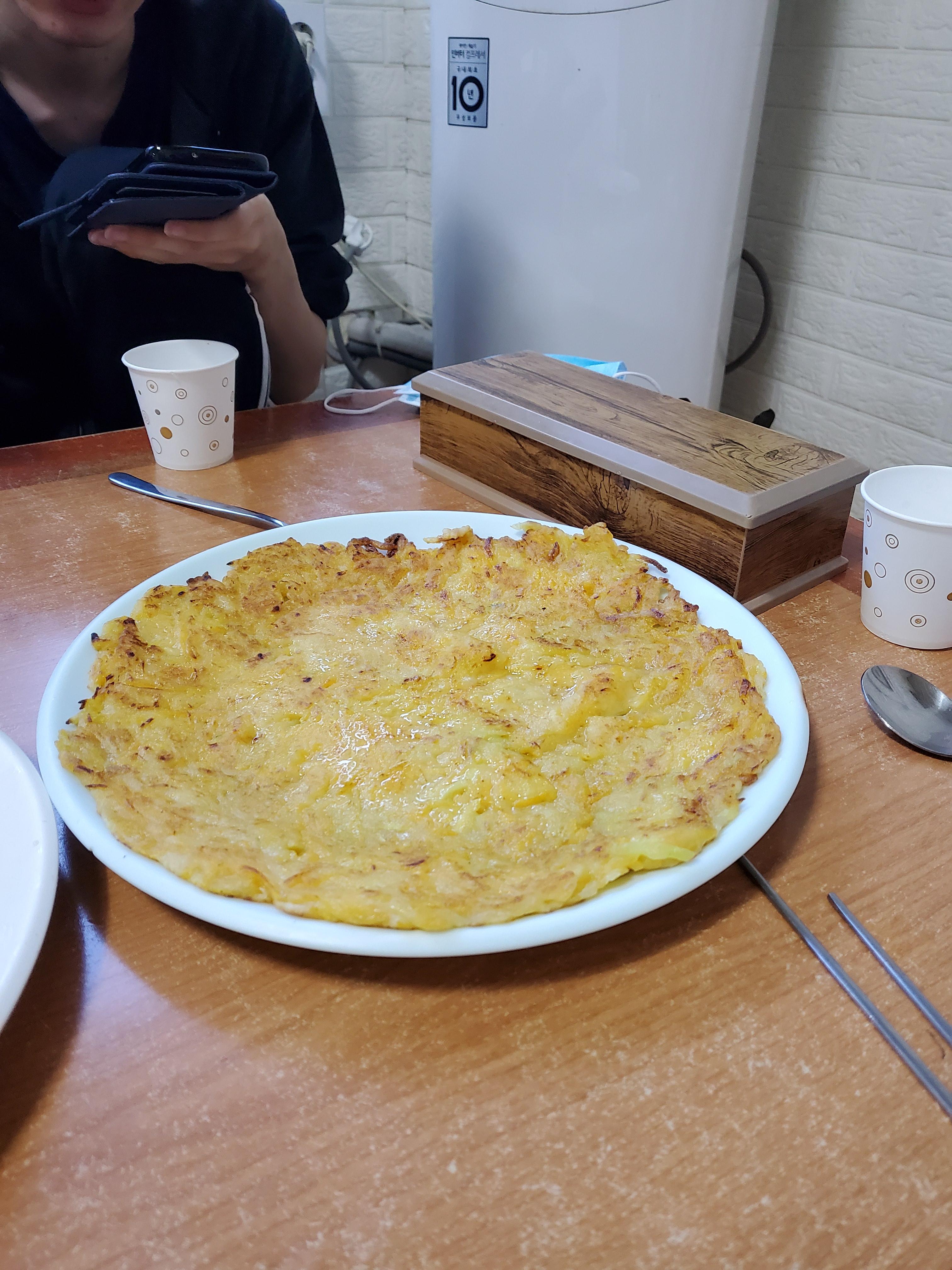 호박전은 나는 애호박전 밖에 안 먹어봤었는데 여긴 늙은호박전이었다. 친구피셜로는 딱 시골 할머니댁에서 먹는 맛이라고 한다. 그 특유의 호박의 단 맛이 잘 어울려지는 맛 이었다.