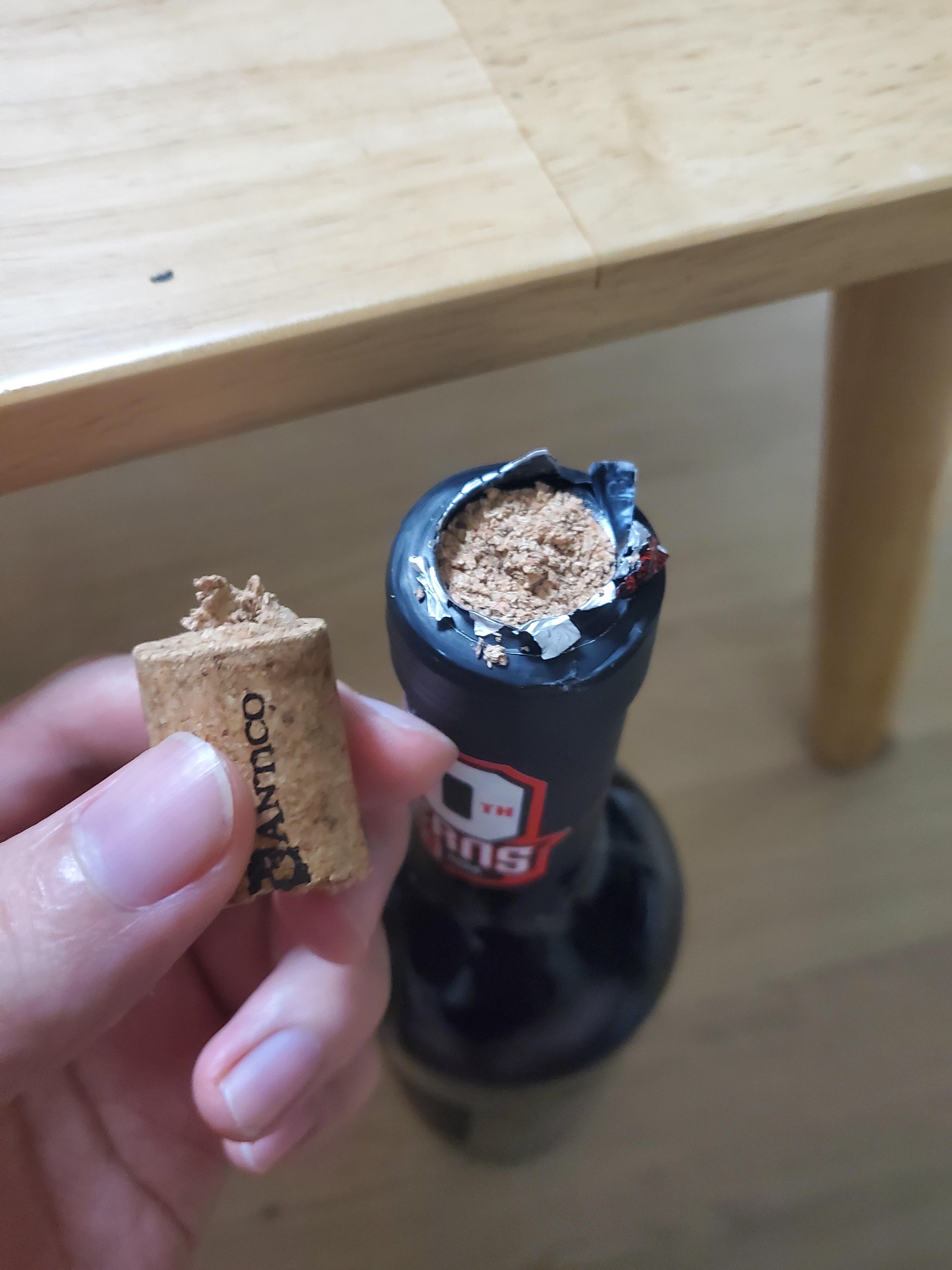 문제는 내가 와인을 많이 안 마셔봤고, 코르크도 많이 안 열어봐서.... 이걸 빼다가 중간에 그냥 잘려가지고 참교육을 당했다... 이런거 능숙하게 해야지 간지나는데ㅠㅠ