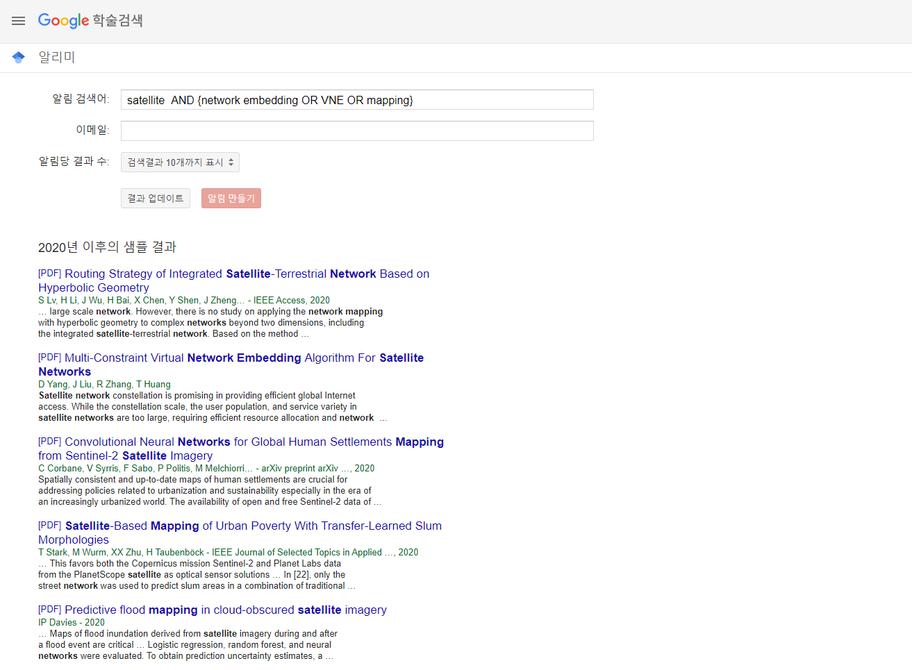 구글 스칼라에 들어가면 이렇게 알리미라는 것이 있다.