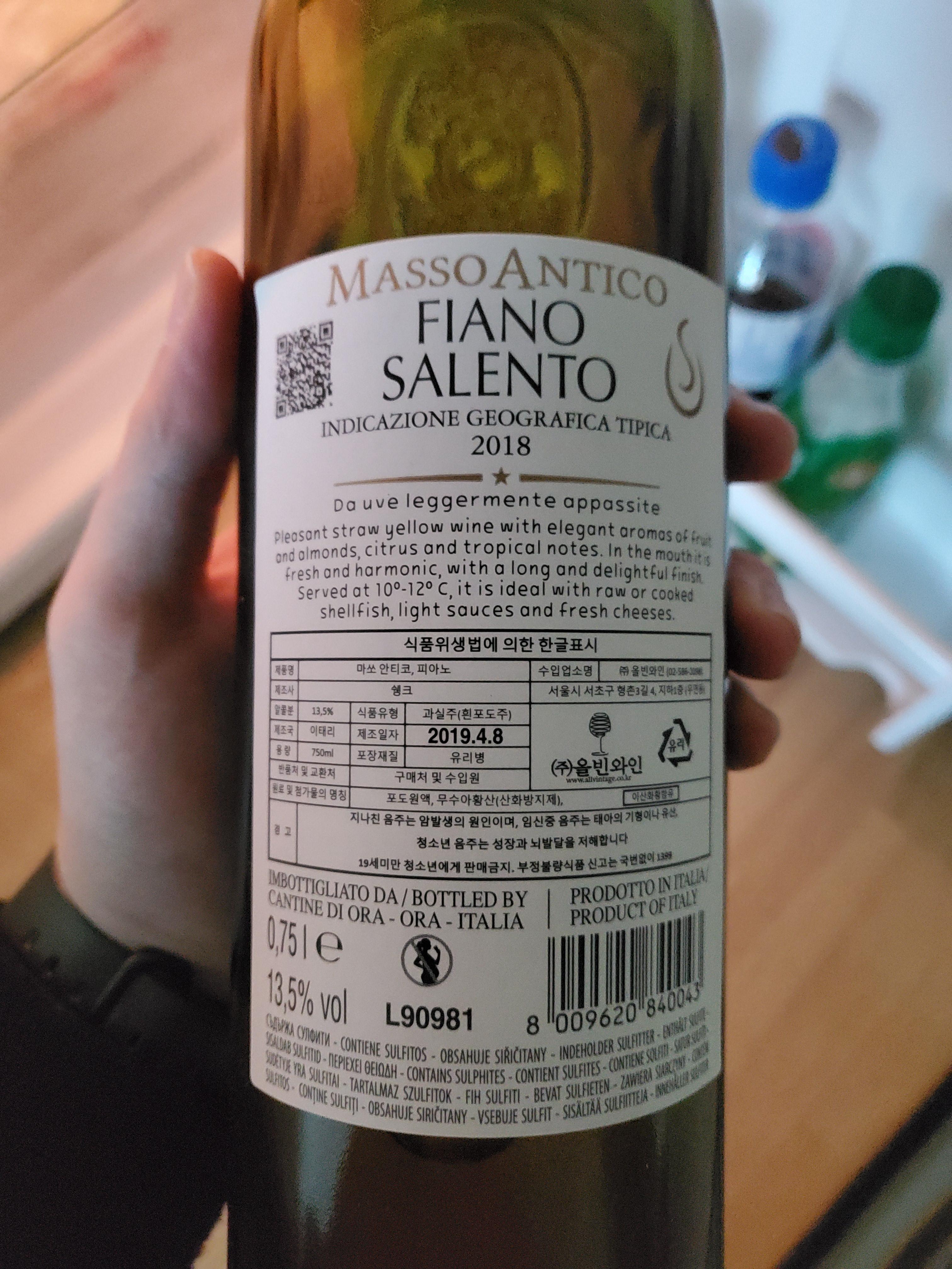 품종: 피아노 100% (Fiano, piano 아님 엌ㅋㅋㅋ)