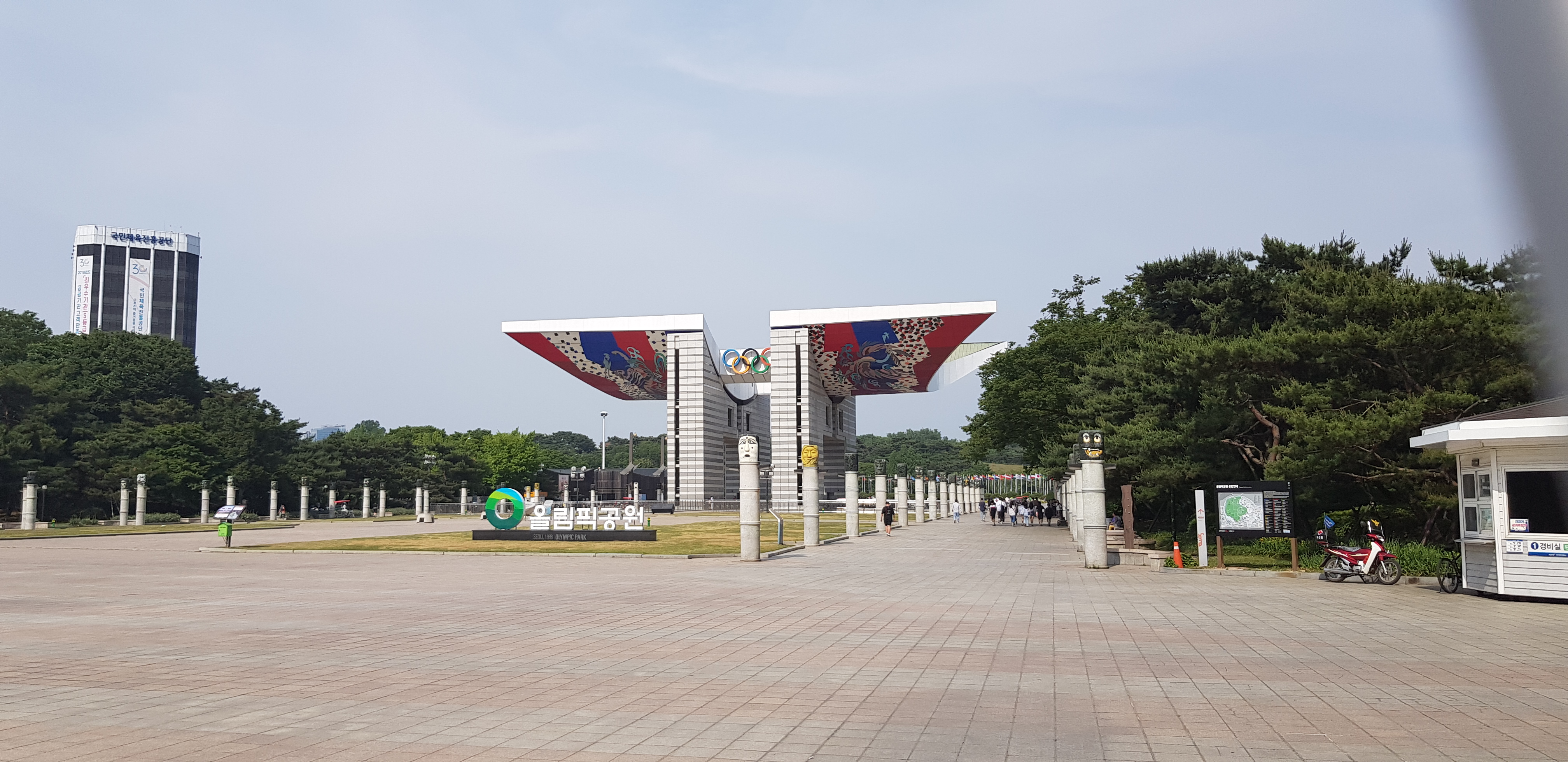 2호선에서 환승하여 8호선 몽촌토성역에 내렸다. 여기서 공원을 가로질러서 가면 체조경기장인 것 같아서 걸어갈까 했지만, 날이 너무 더웠다. 그래서 사진만 찍고 다시 9호선 역을 찾아가서 지하철을 타고 올림픽공원역 까지 이동을 했다.