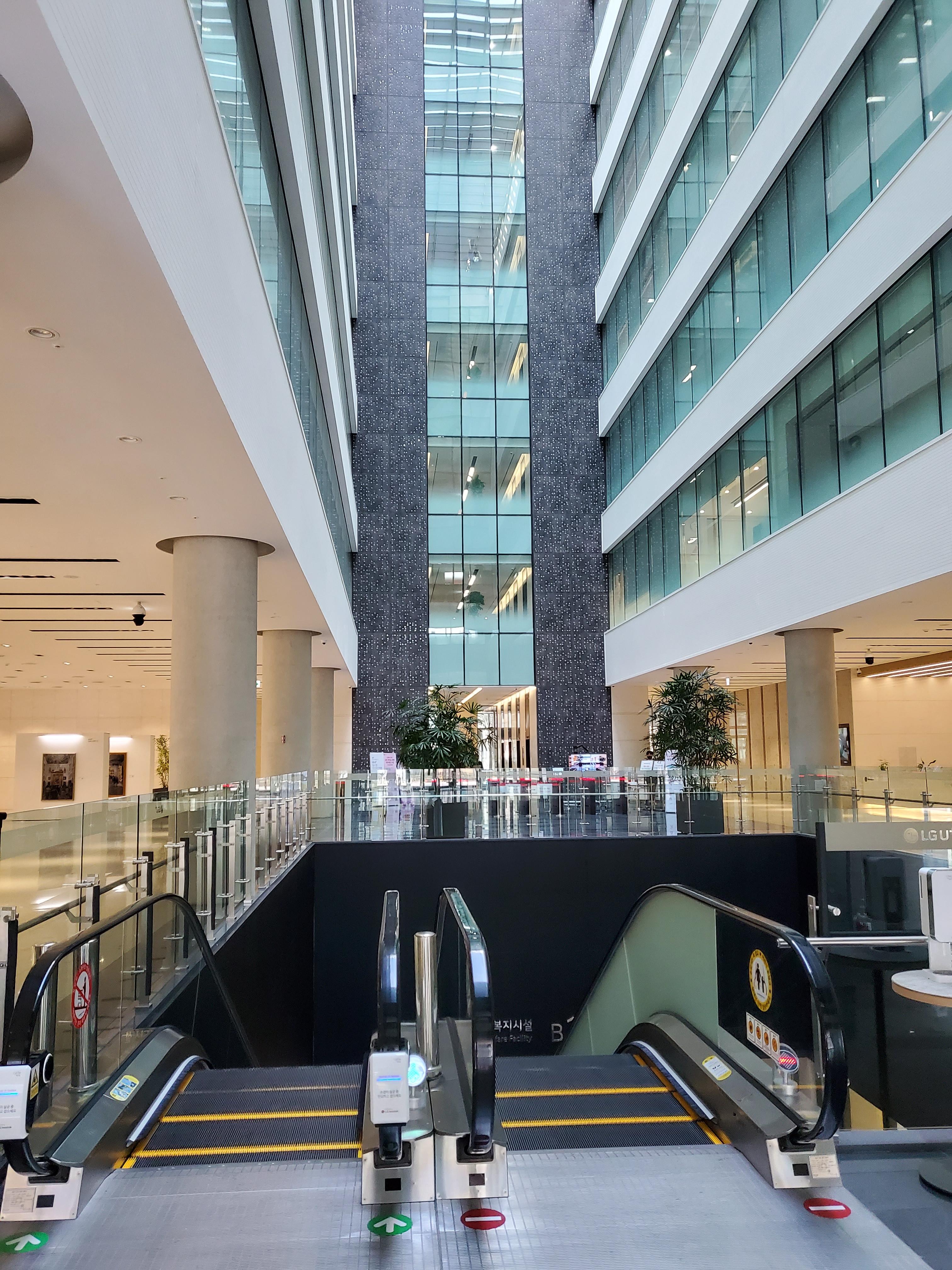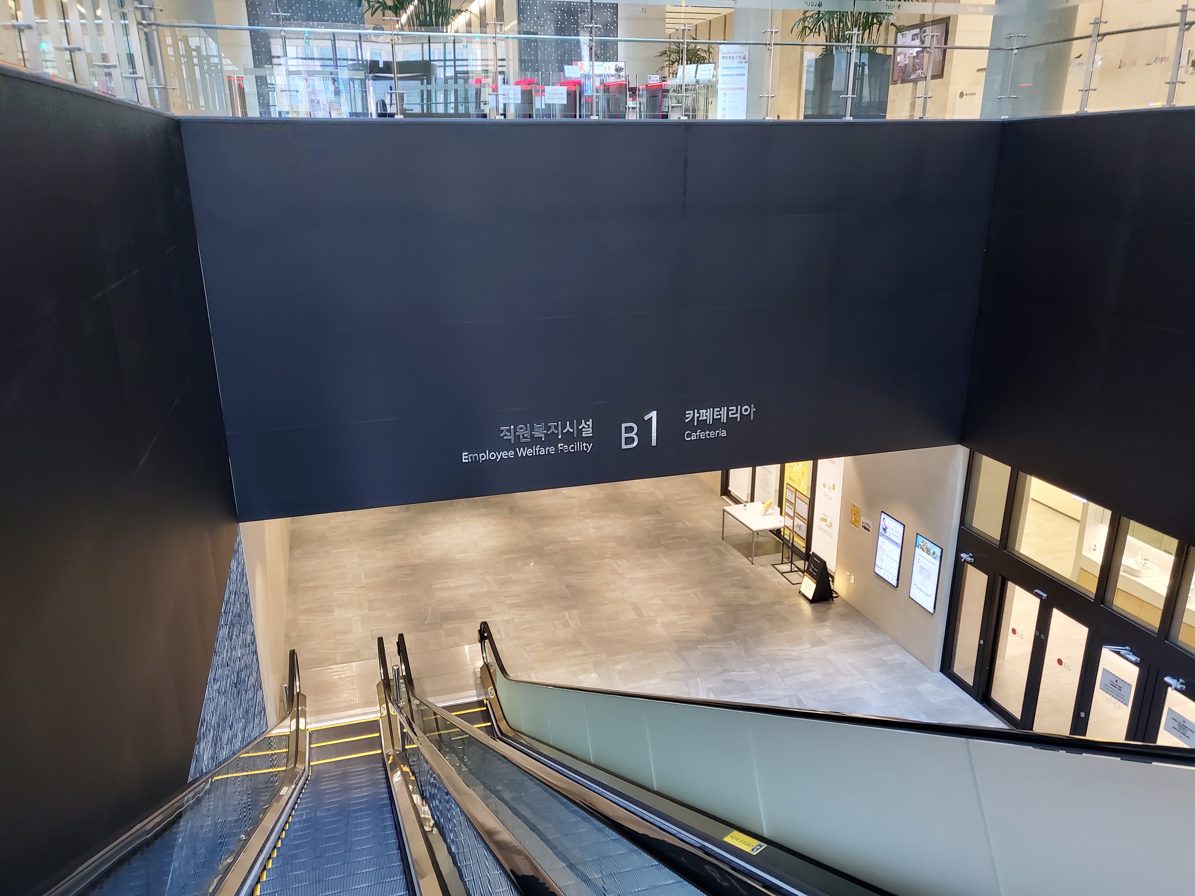 정문으로 들어온 로비 모습이다. 이 에스컬레이터를 타고 대기장소로 내려갔다.