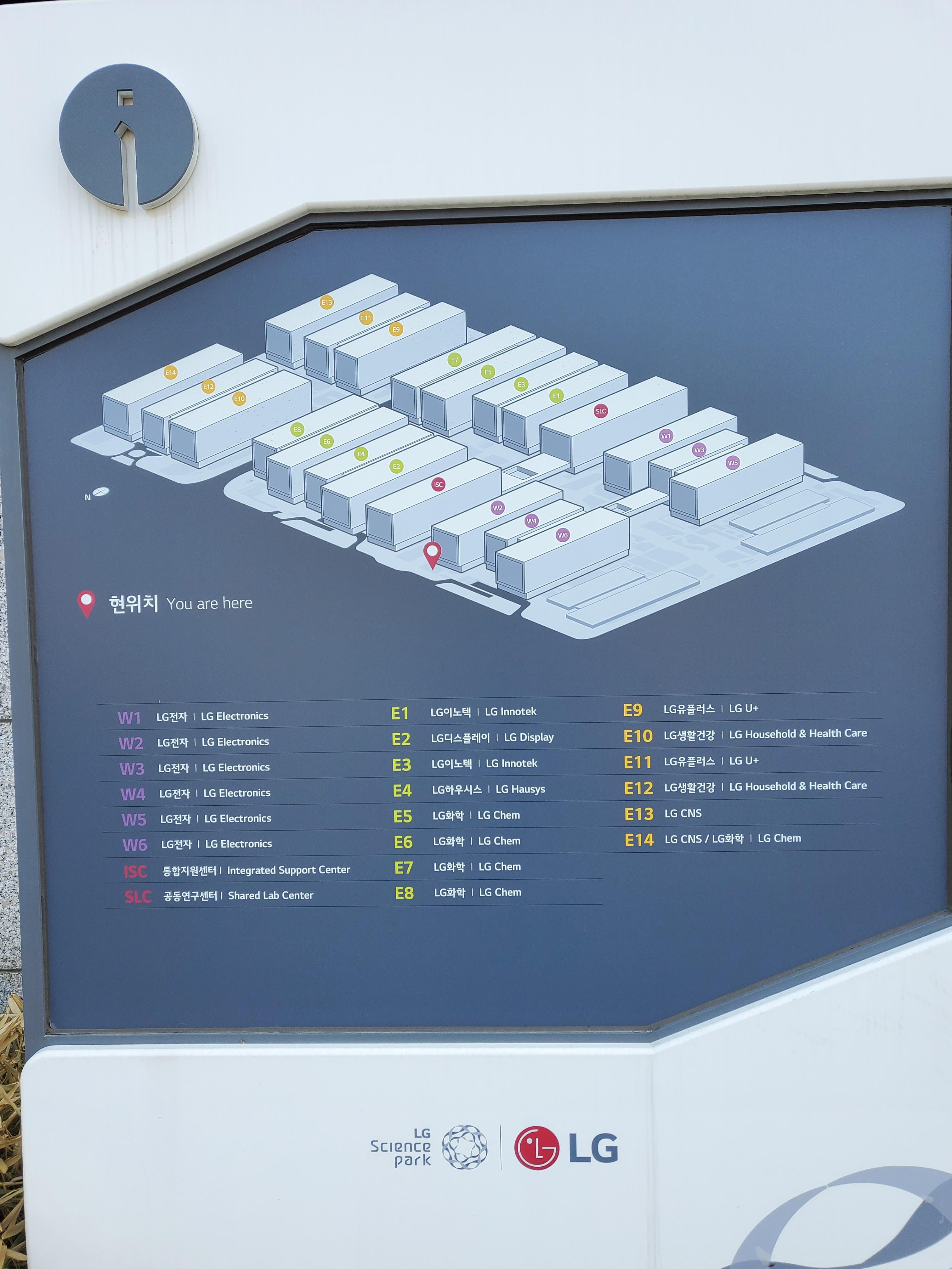 위의 안내도처럼 다양한 LG그룹 회사들이 모여서 하나의 캠퍼스처럼 조성이 되어있었으며, 현위치로 표시되는 쪽이 마곡나루역 방향인데, LG 유플러스 사옥은 마곡나루역에서는 비교적 먼 곳에 위치하고 있었다.